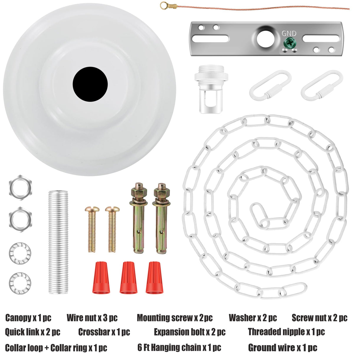 Package Includes: 1 X Canopy; 1 X Crossbar; 1 X Collar Loop; 3 X Wire Nuts; 2 X Mounting Screws; 1 X Threaded Nipple; 1 X Quick Link; 1 X Collar Ring; 1X Hanging Chain