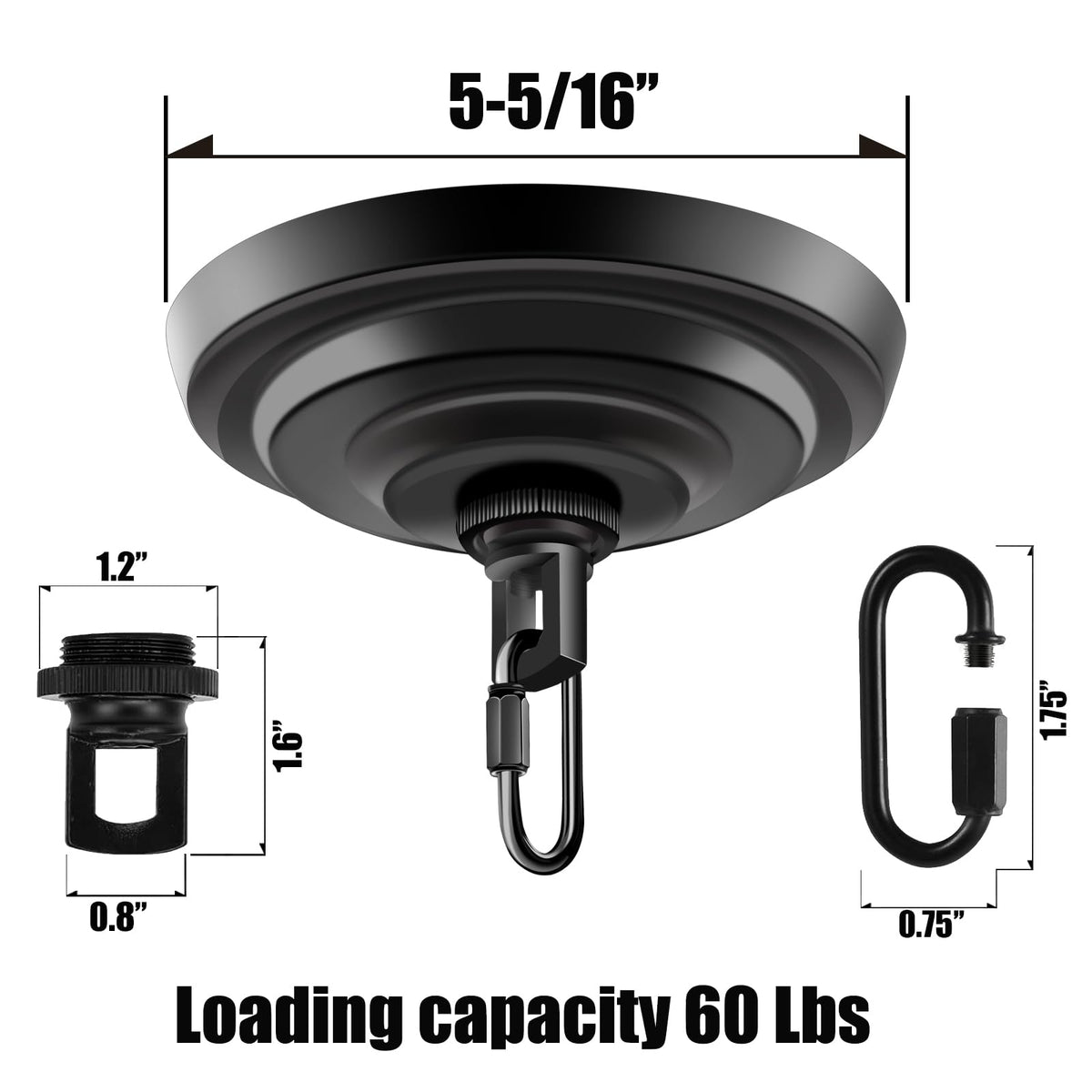Q: How much weight can the canopy support?A: This canopy kit is designed to support a maximum weight of 60 lbs, making it suitable for various light fixtures including chandeliers and pendant lights.