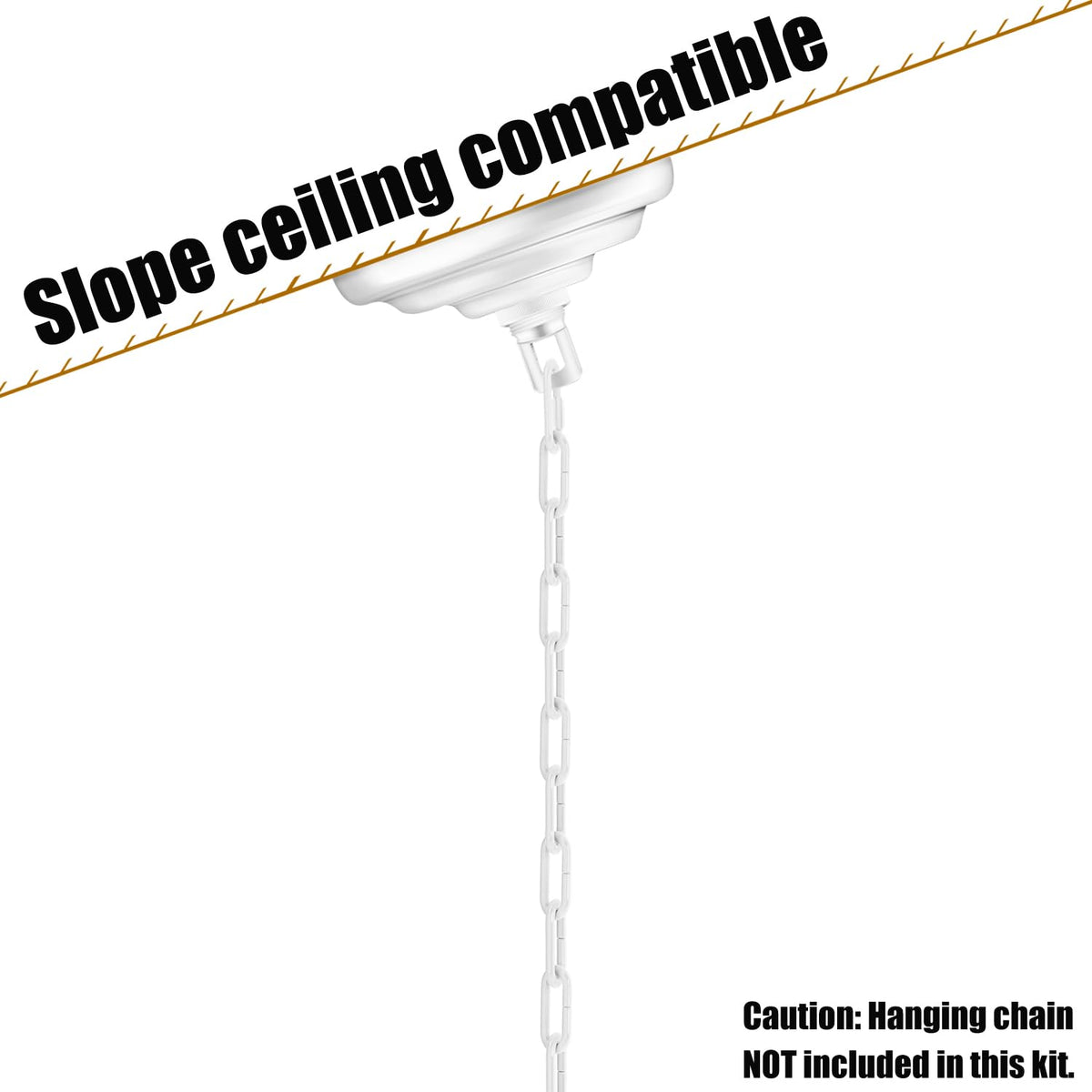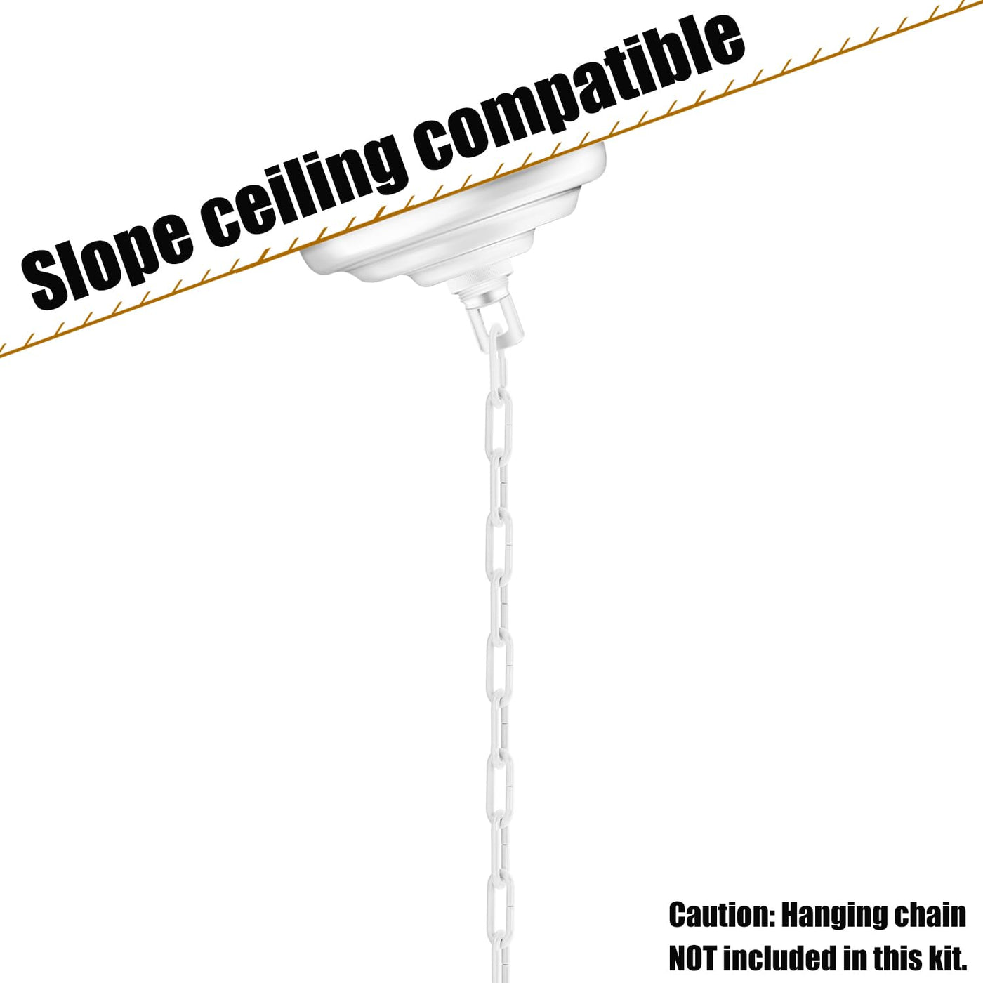 Comprehensive Kit: Contains a 5-5/16 inch canopy, 6 feet long hanging chain, crossbar, mounting screws, threaded rod, matching loop, and quick link.