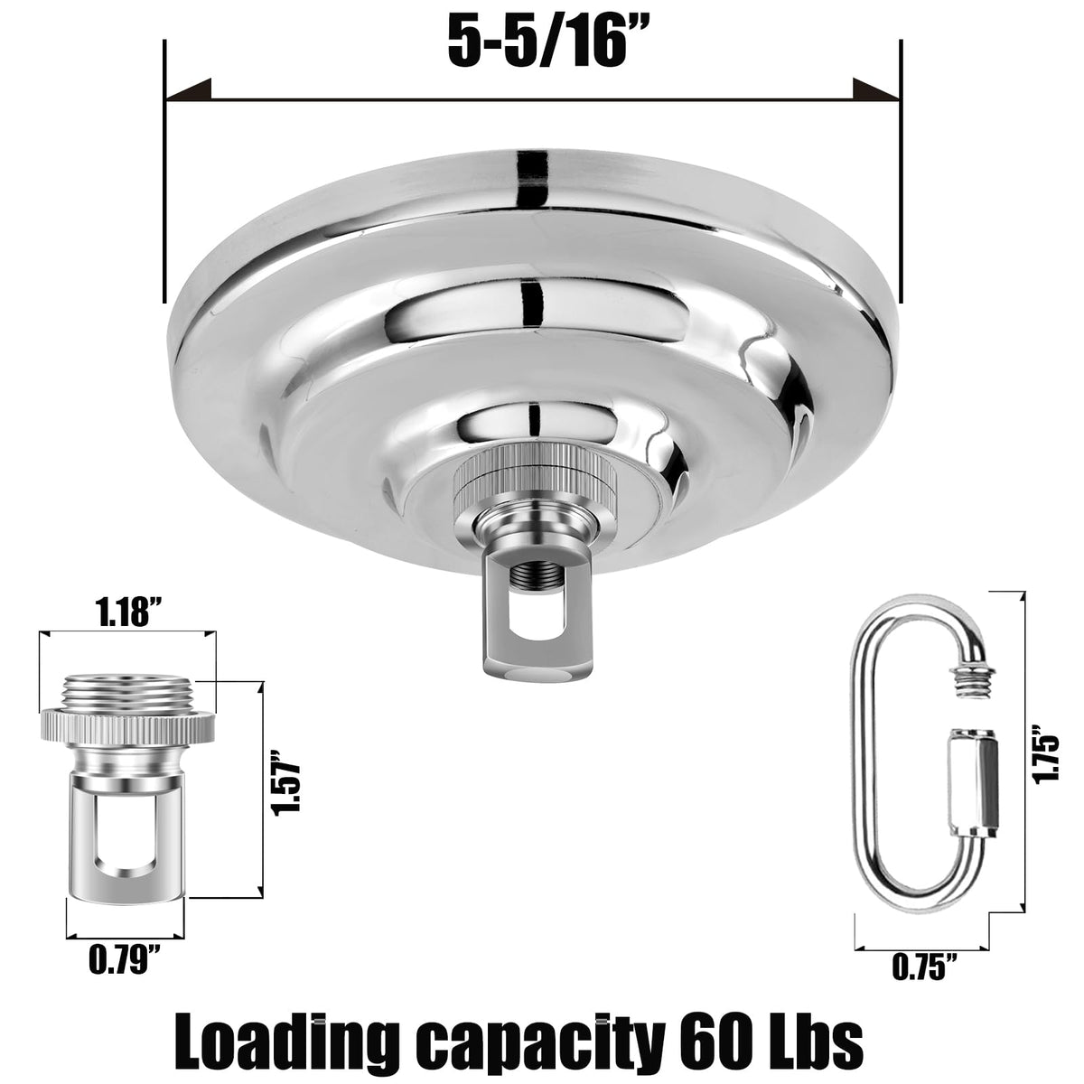 This canopy kit includes well-made components made from durable alloy steel, ensuring reliability and longevity. The sleek chrome finish adds a modern touch to any interior decor, while the thoughtful design eliminates visible side screws for a clean appearance. With a maximum weight capacity of 60 lbs, this canopy is well-suited for various lighting fixtures and decorative applications.
