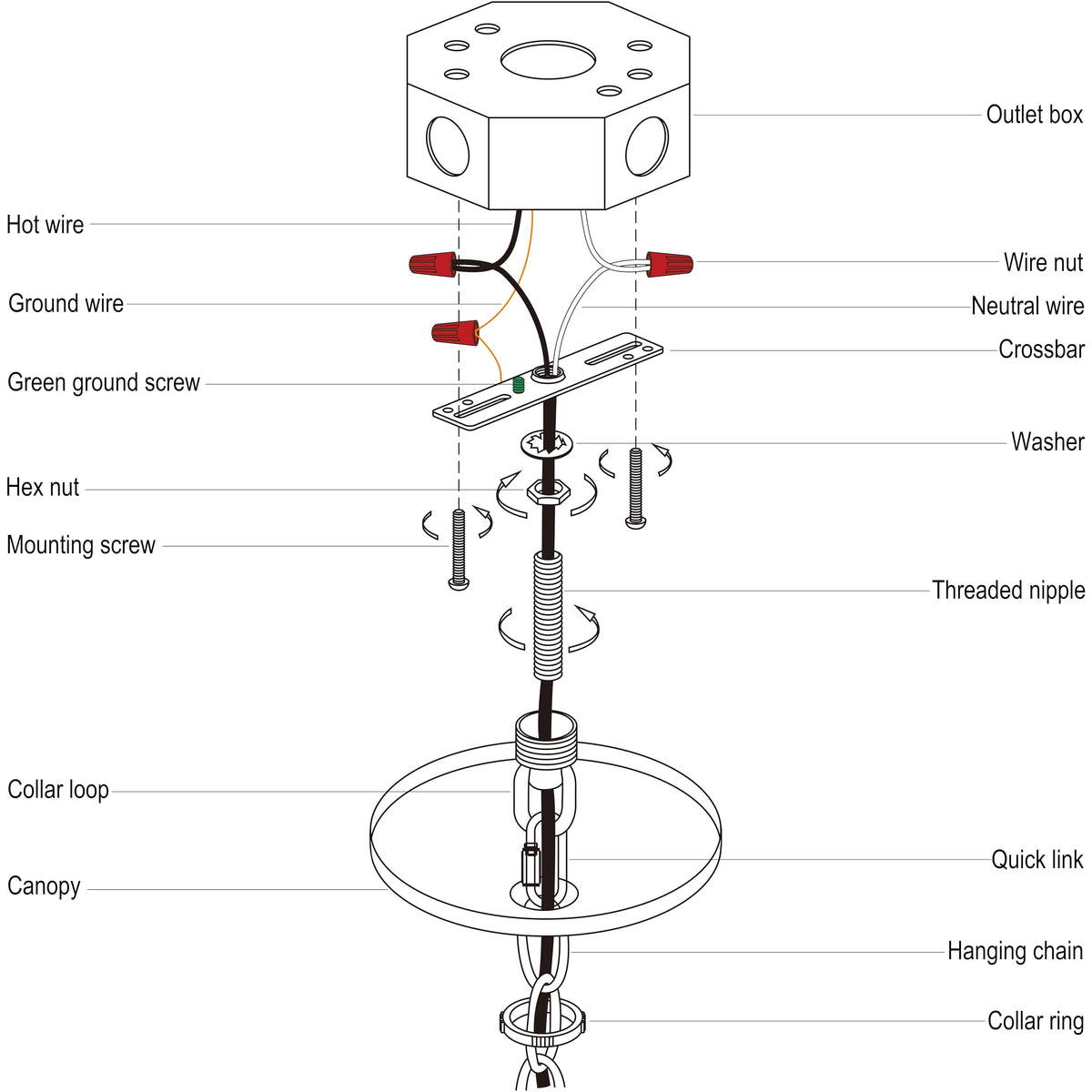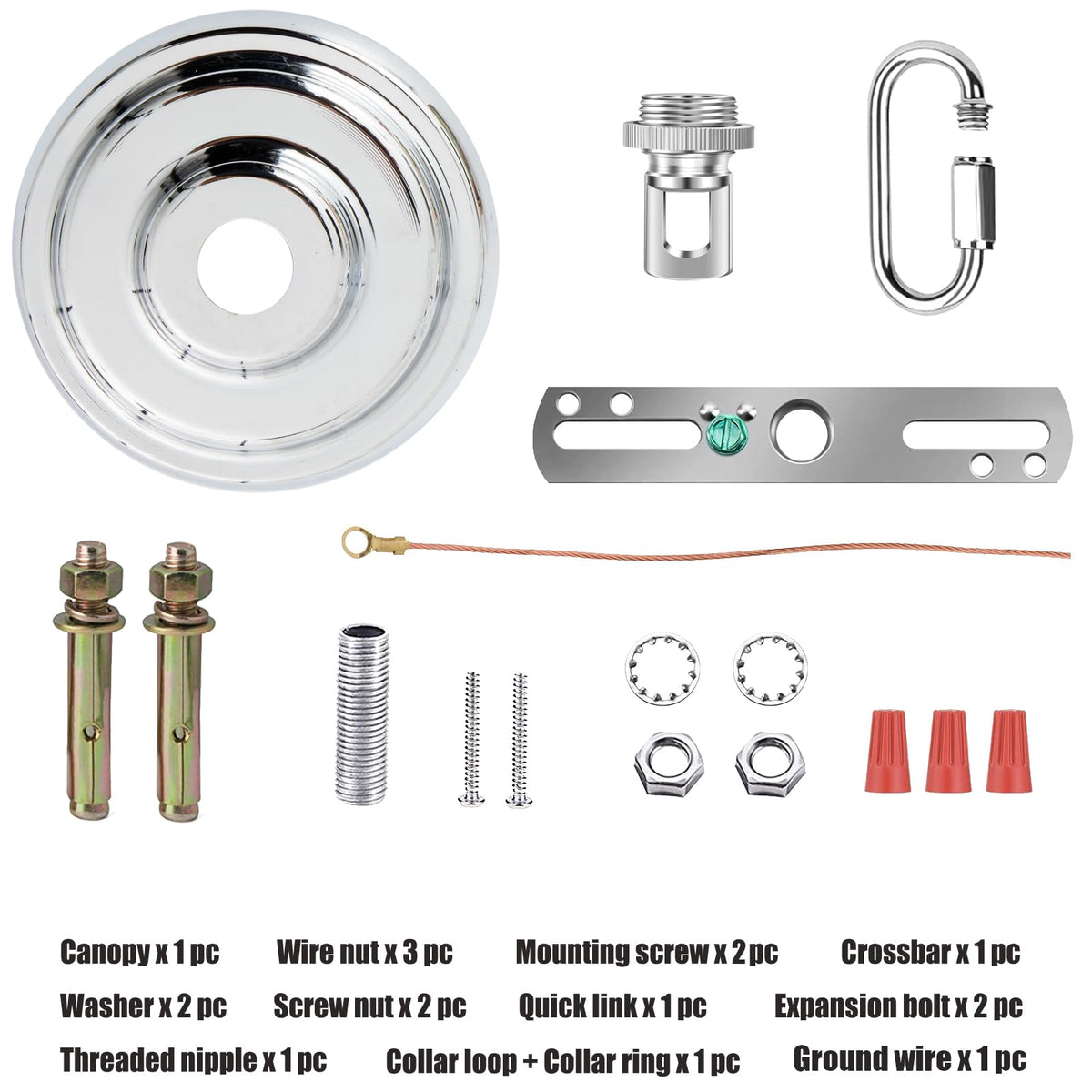 Comprehensive Kit: Includes 1 canopy, crossbar, collar loop, wire nuts, mounting screws, threaded nipple, quick link, and collar ring.