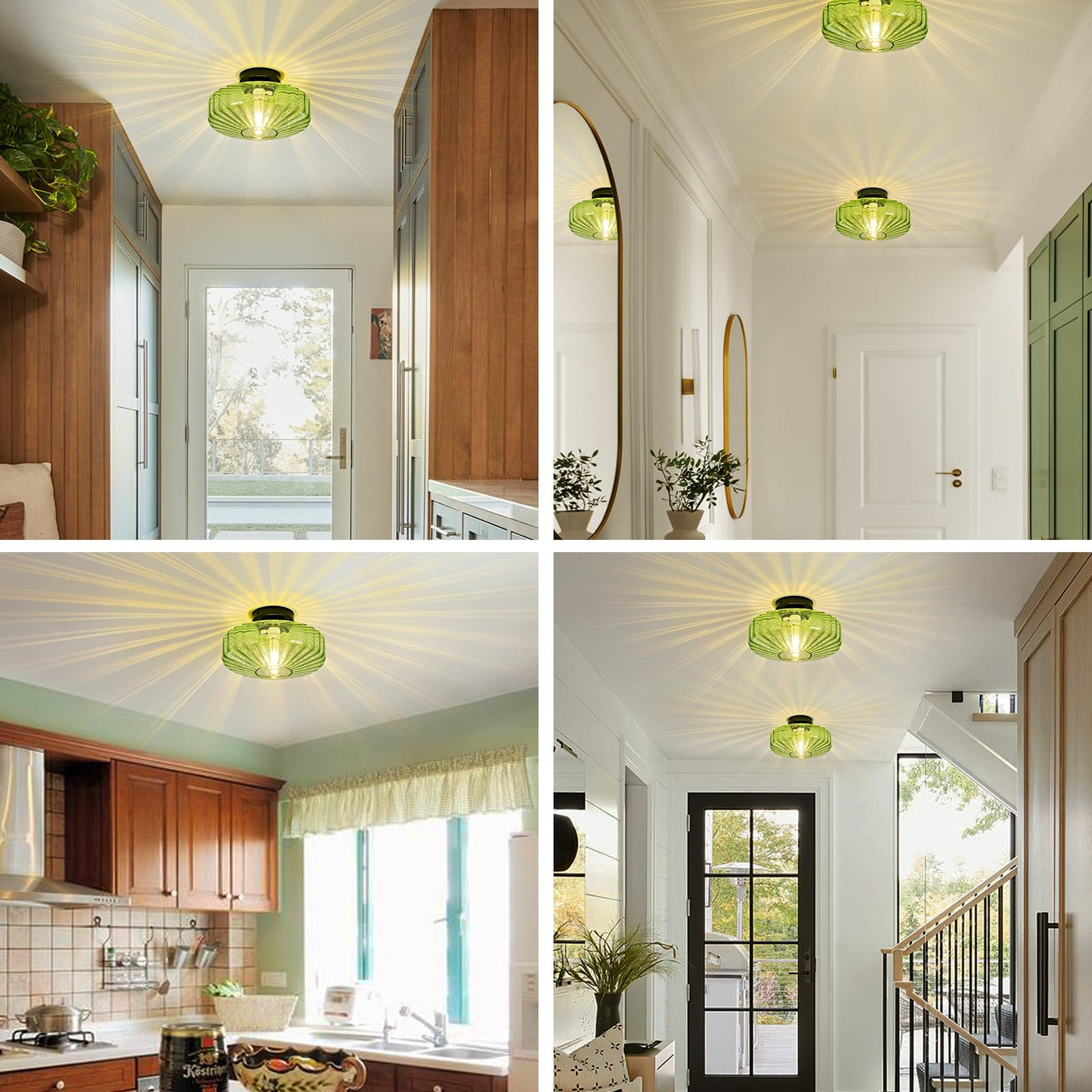 Mazu House Glass Semi Flush Ceiling Light - Vintage Mid Century - 12 in Green Drum Fixture - Model DDXD09-LS-30cm