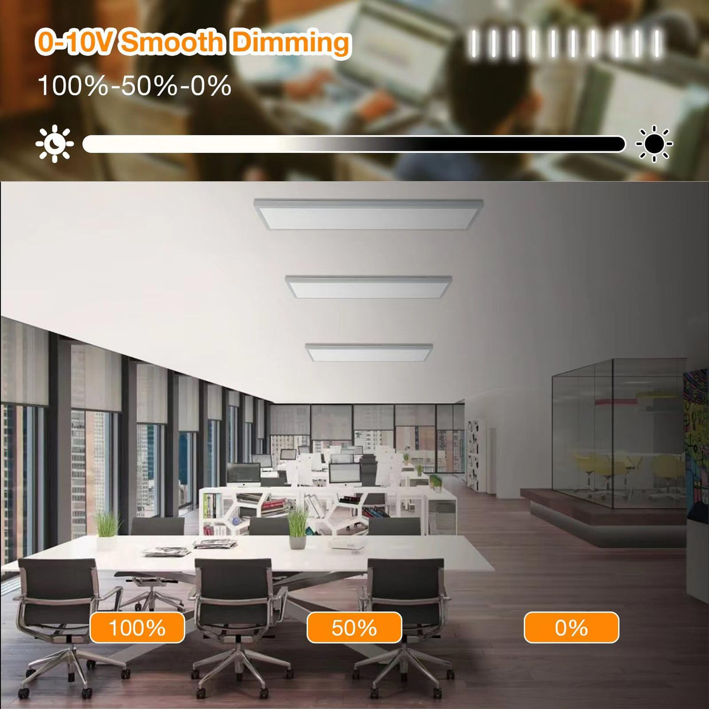 Q: What type of dimming capabilities does the Mcacggo LED light have?A: The Mcacggo 1x4 LED flat panel light features 0-10V smooth dimming capabilities, allowing for precise brightness adjustments without flickering or yellowing over time.