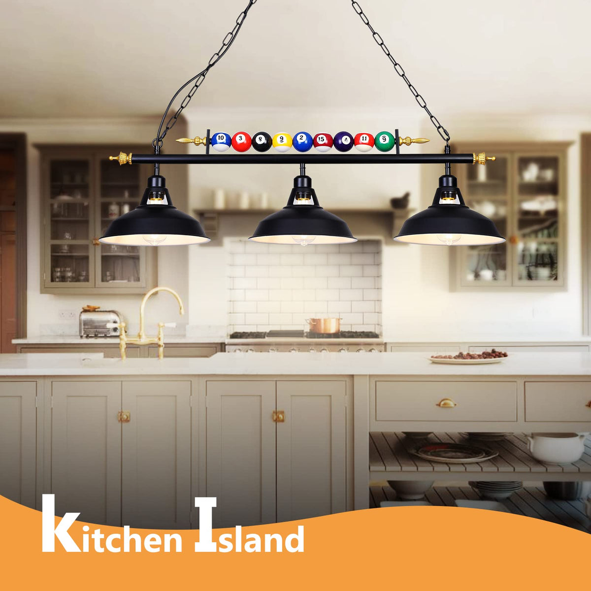 Mcacggo 3-Light Billiard Pool Table Lights Hanging Over Pool Table, Black Matte Metal Shades With Billiard Ball Decor, For Billi