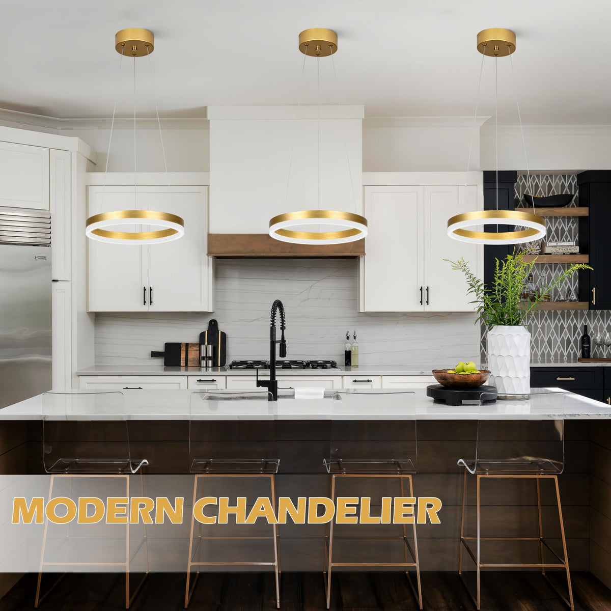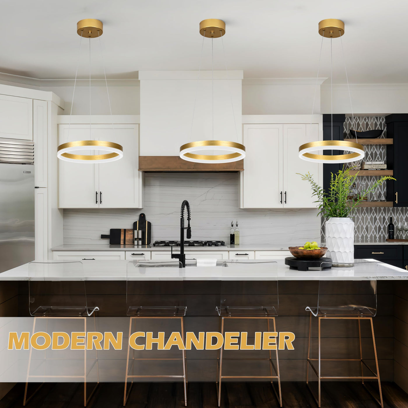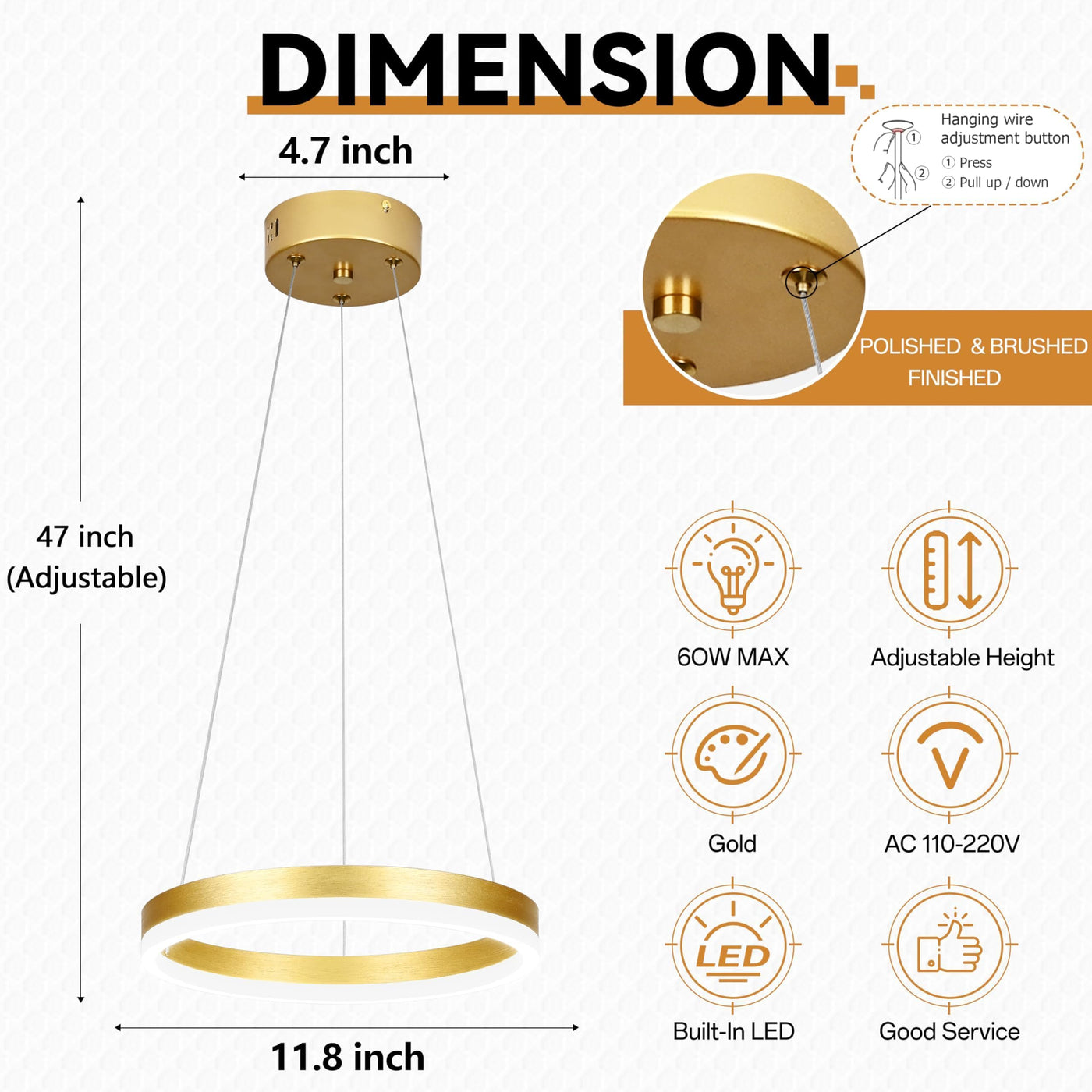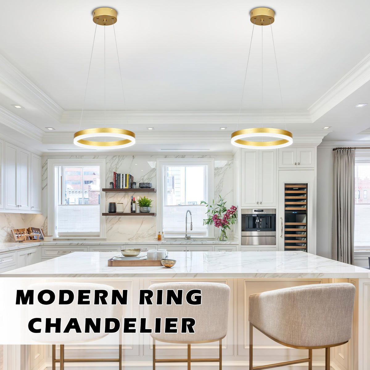 Mccokaige 12'' Gold Led Ring Chandelier Ring Modern Led Chandelier Modern Pendant Lights Adjustable Height Light Contemporary Li