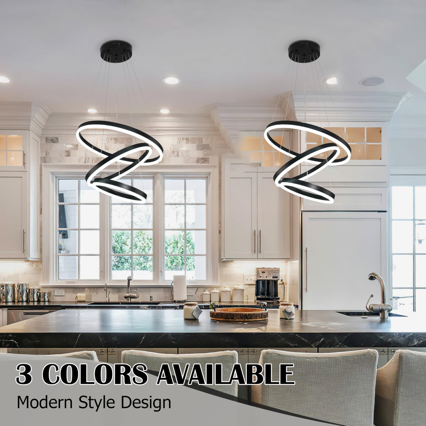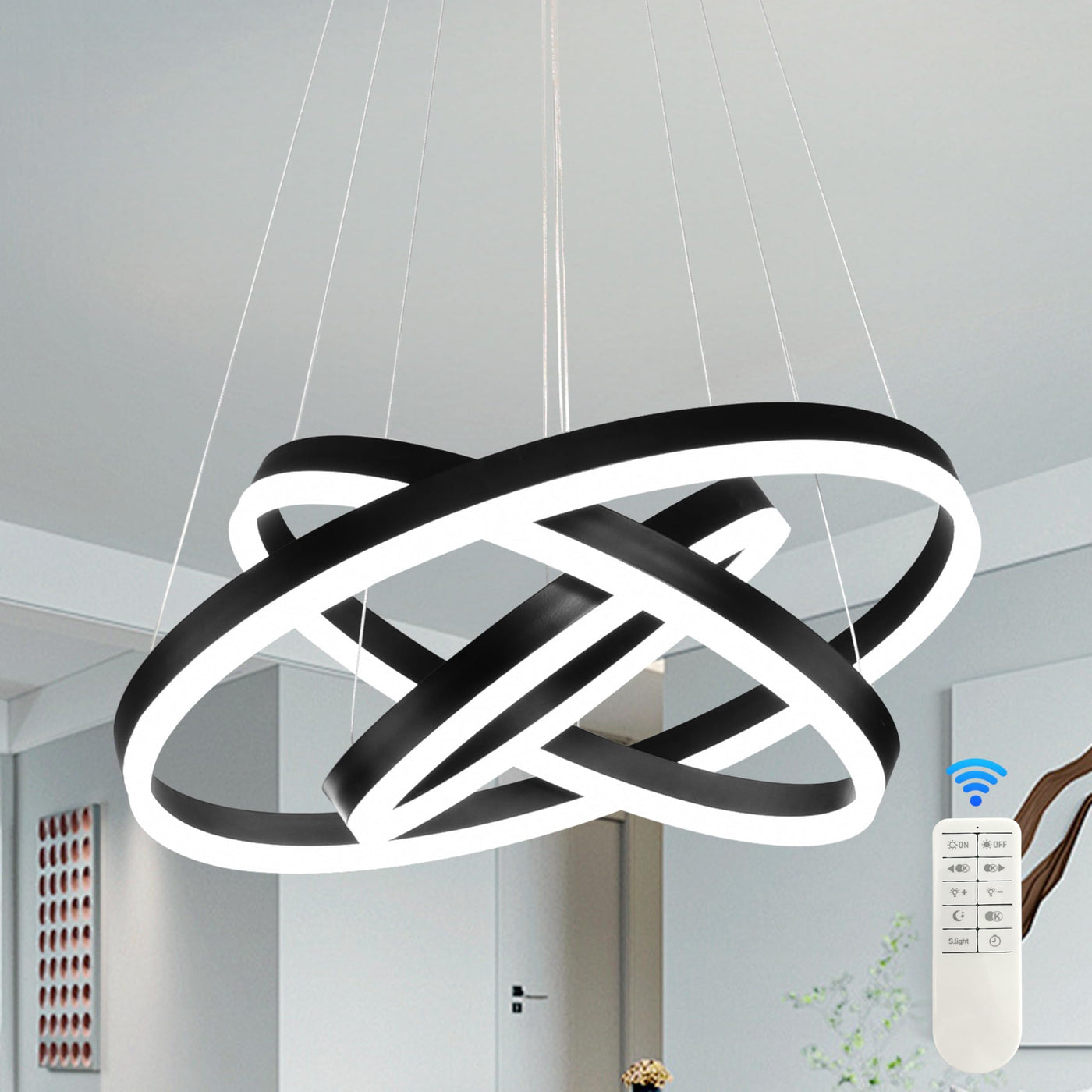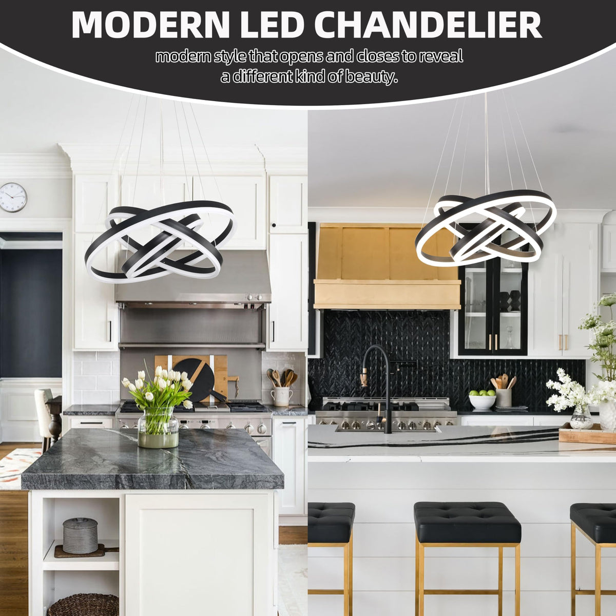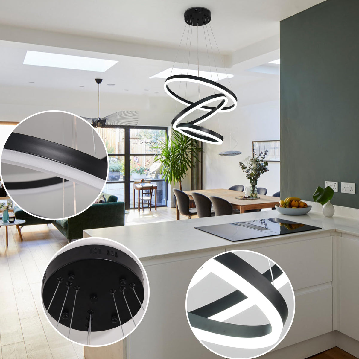 Black Led Chandelier 3 Ring Modern Chandelier Adjustable Pendant Light Contemporary Light Fixtures For Dining Room Kitchen Island Entryway Living Room