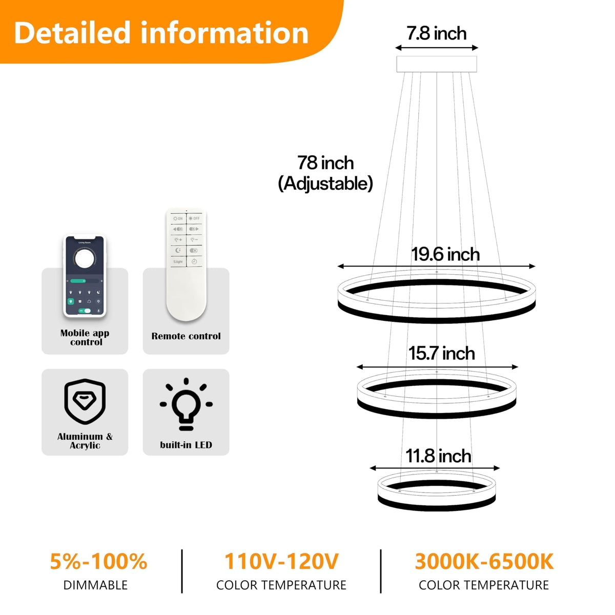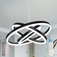 Mccokaige Modern Led Chandelier 3 Rings Black Pendant Lights Dimmable Chandeliers Color Temperature Height Adjustable Black Chan