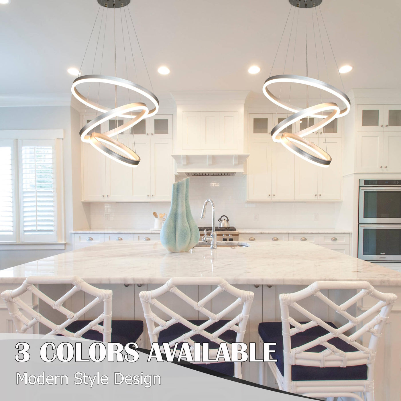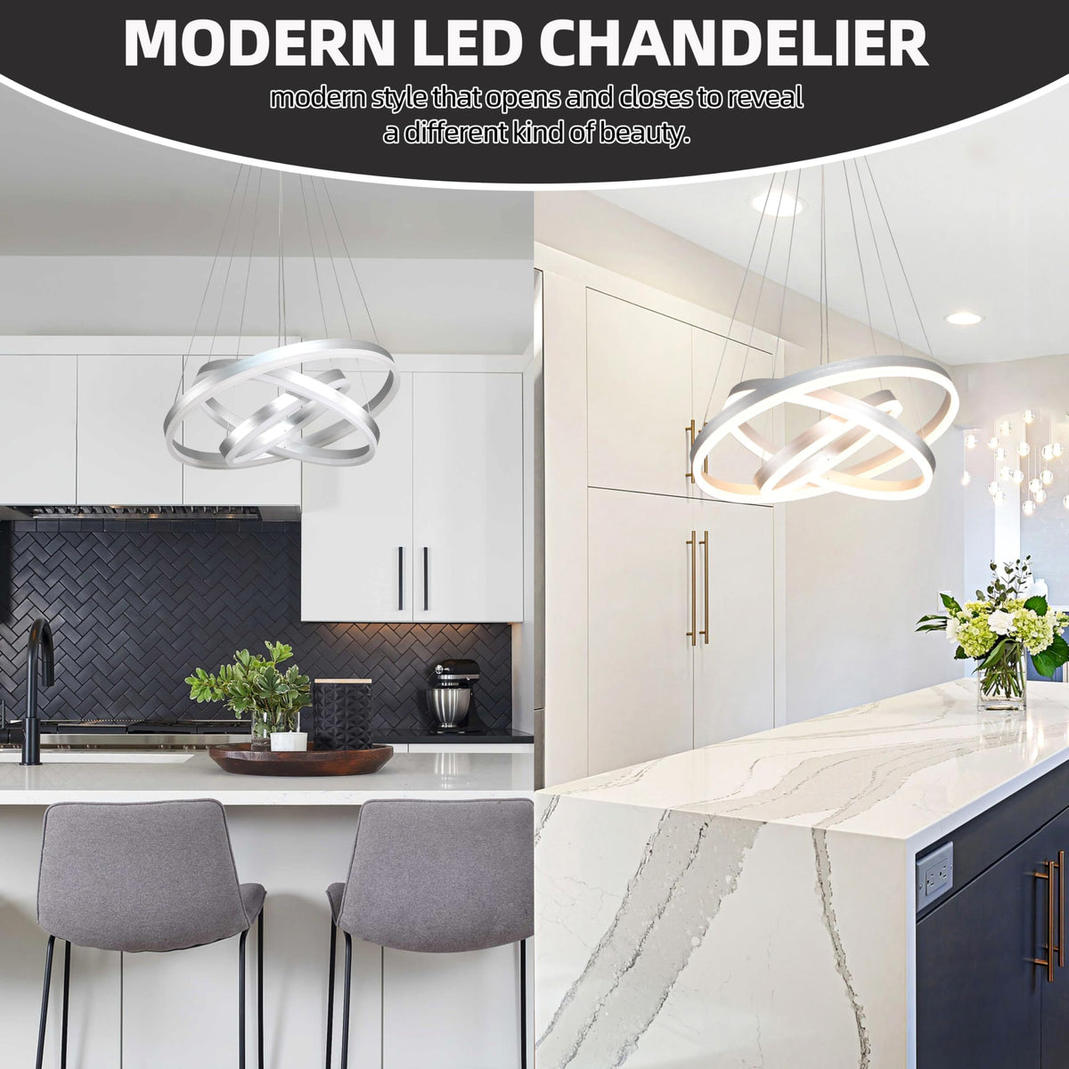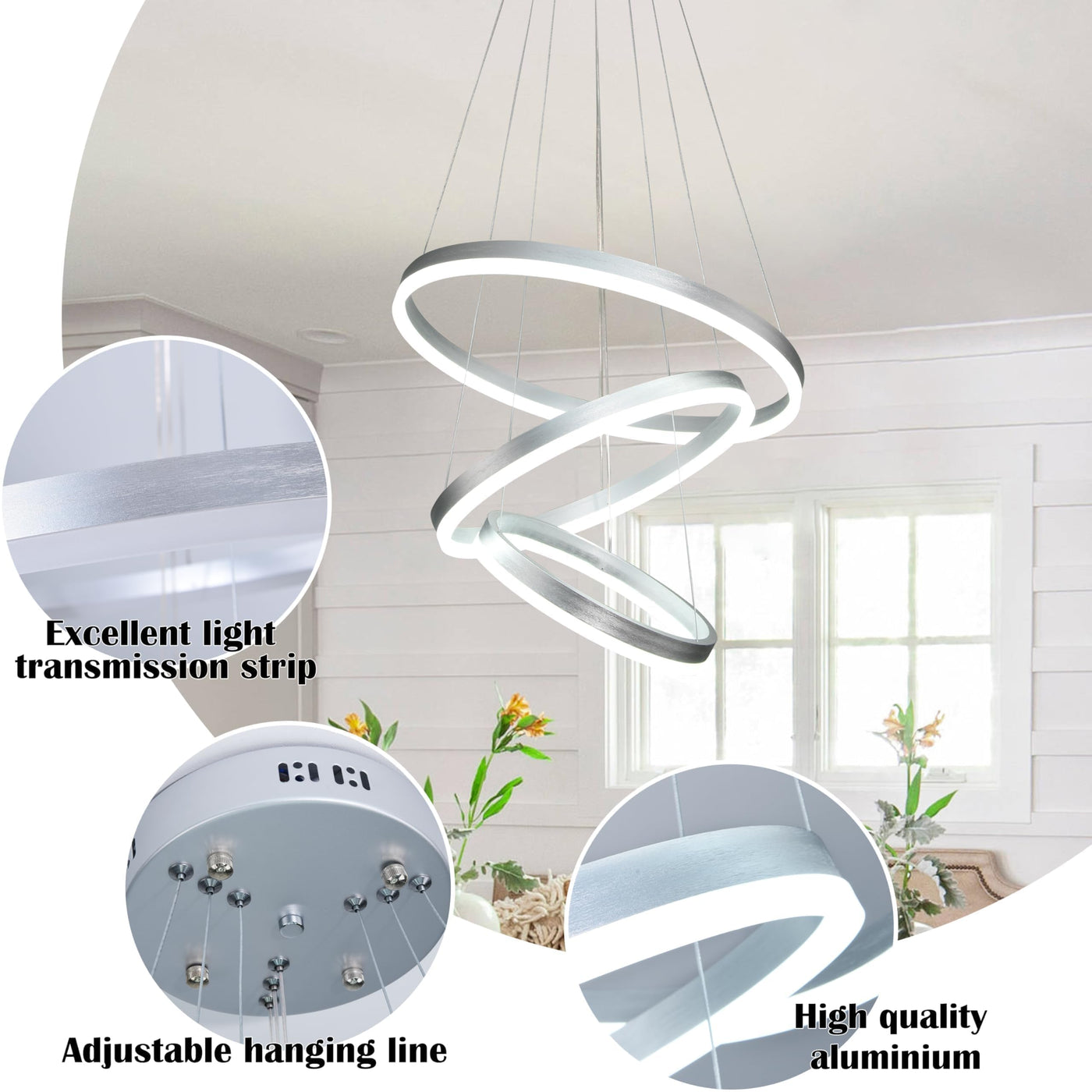 Silver Led Chandelier 3 Ring Modern Chandelier Adjustable Pendant Light Contemporary Light Fixtures For Dining Room Kitchen Island Entryway Living Room
