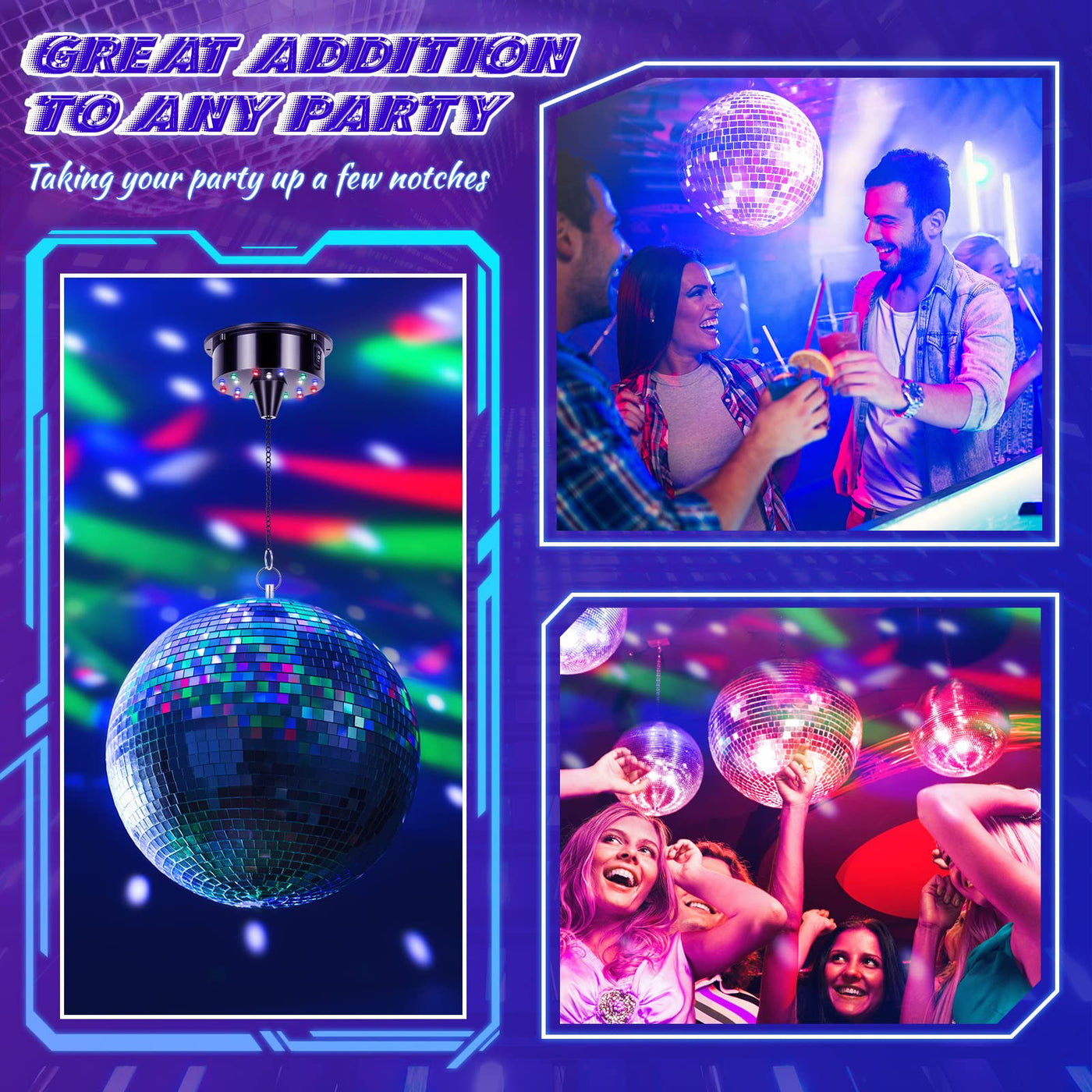 Meagoo Disco Ball With Motor And Light, 8'' Hanging Mirror Ball And 6Rpm Batteries Powered Rotating Motor With 4 Light Colors An