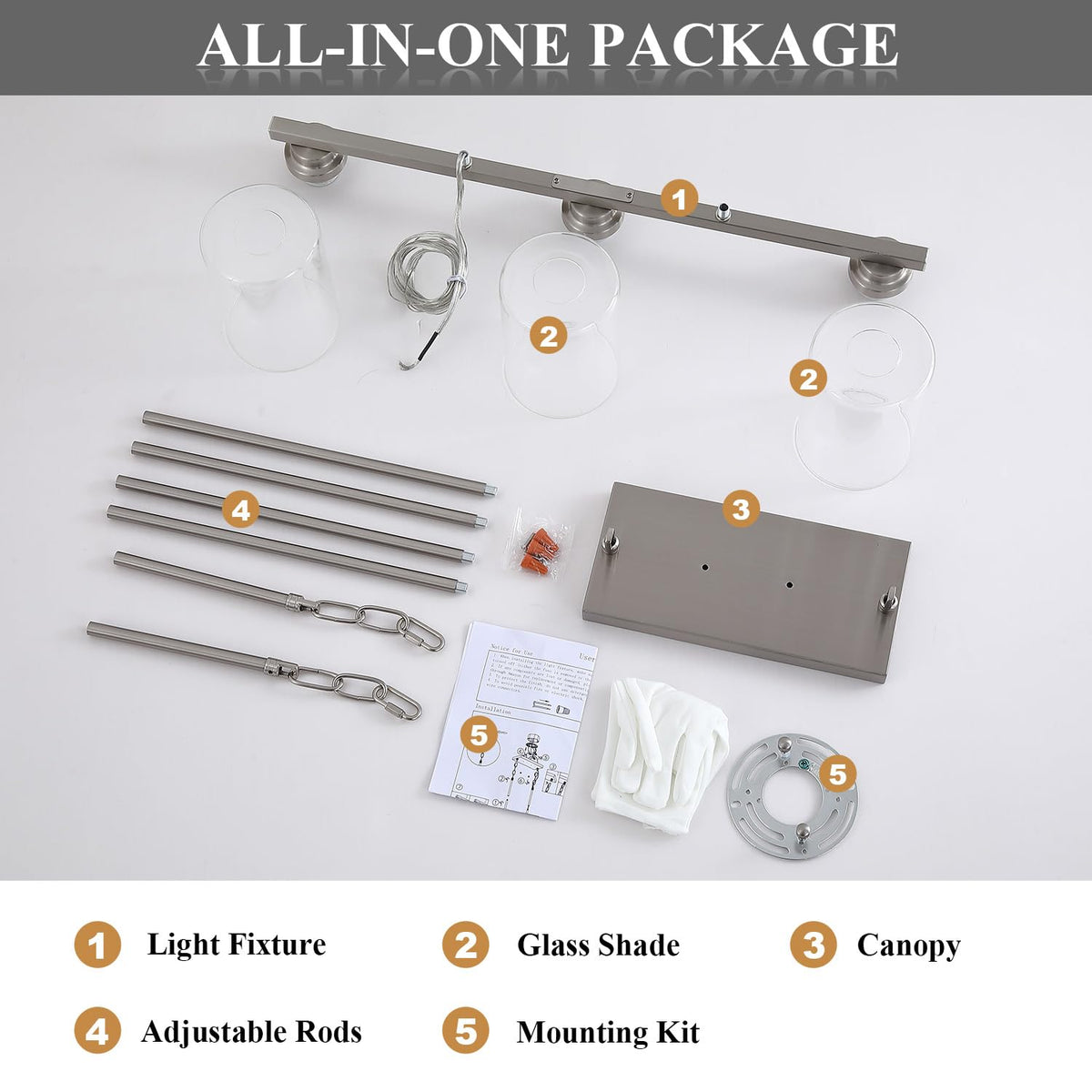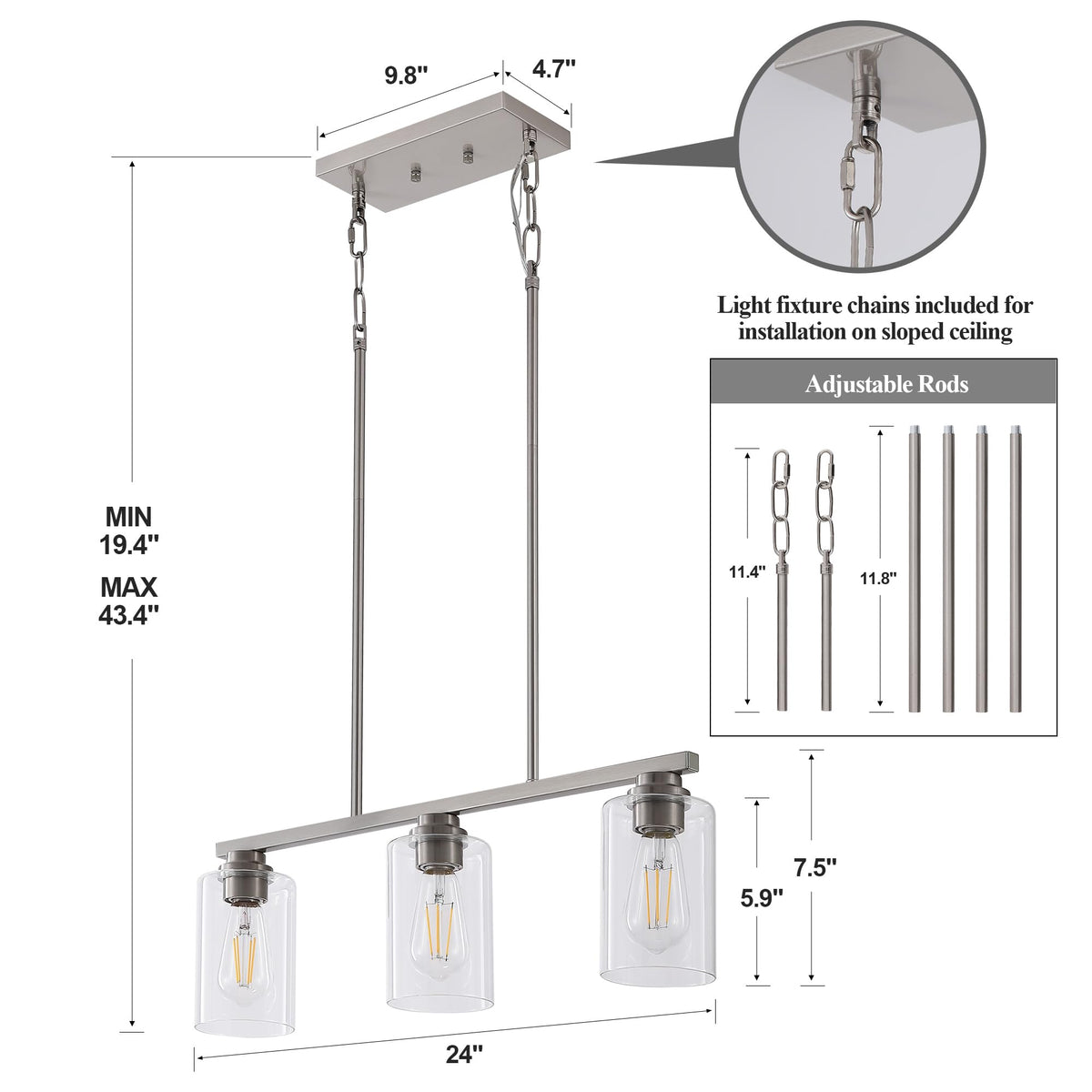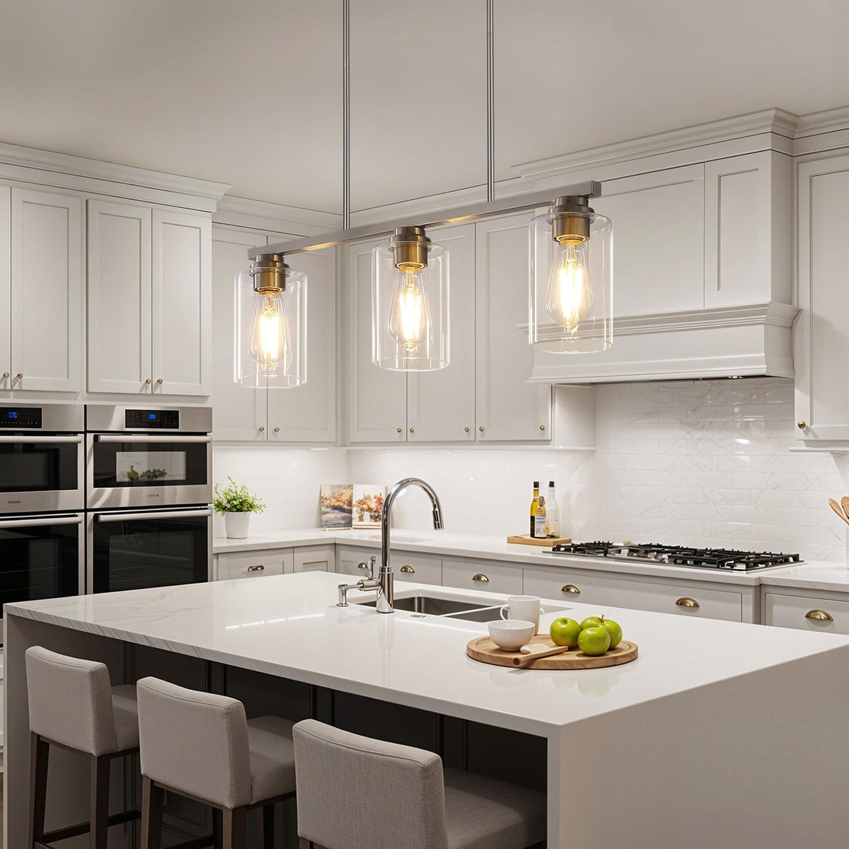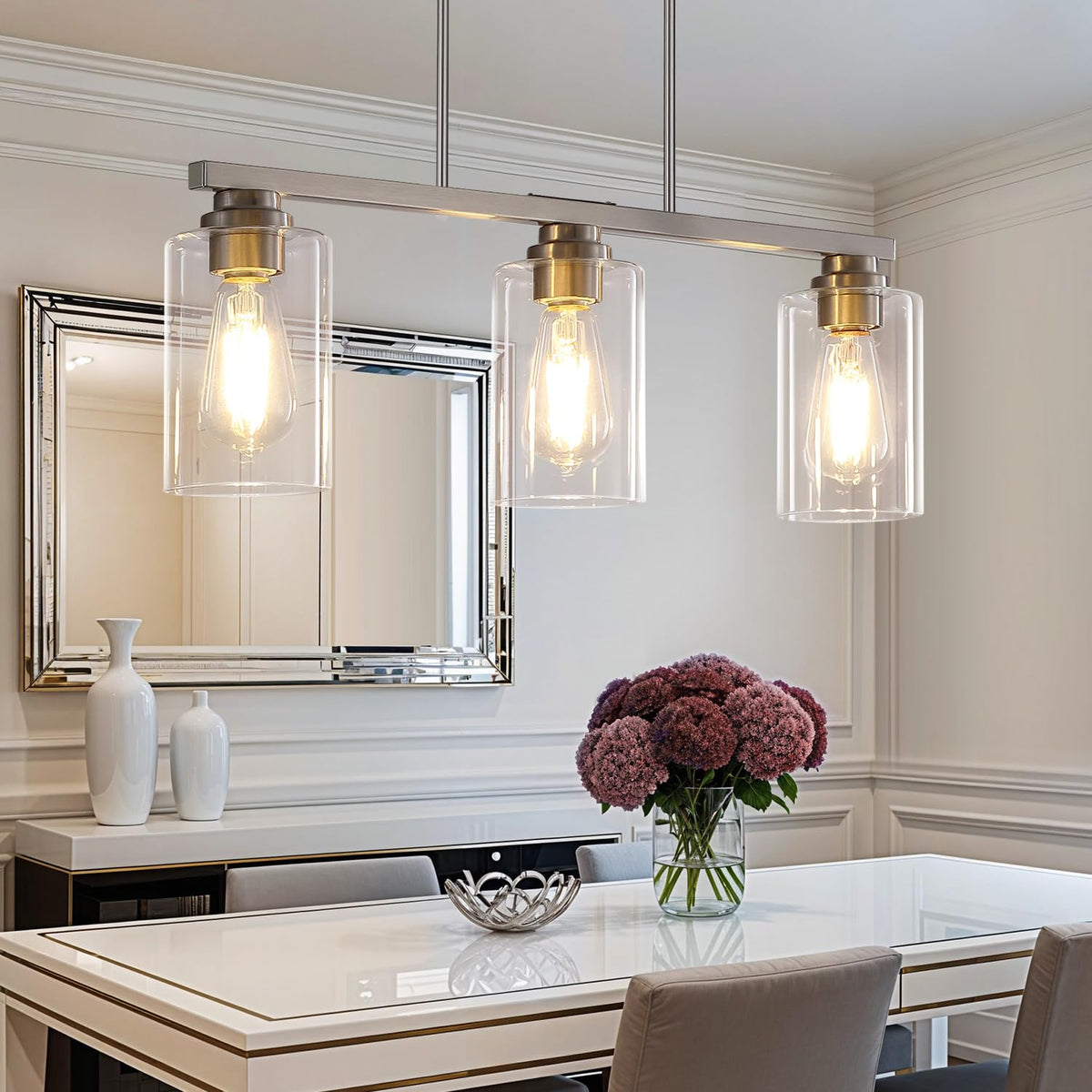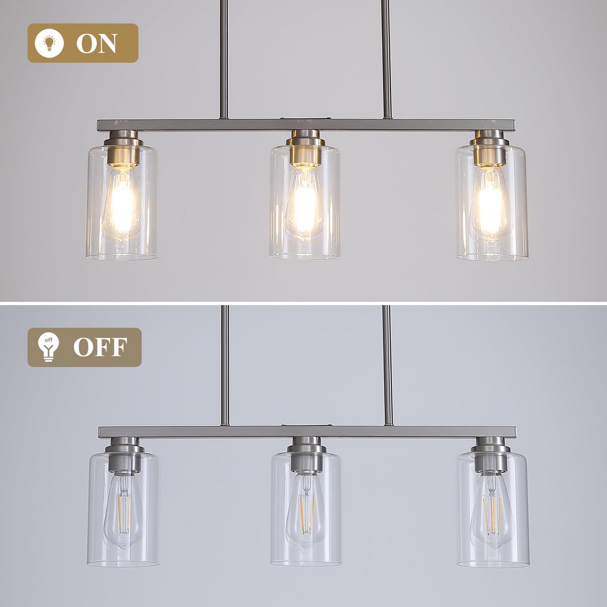 Mecgirn Island Light For Kitchen Brushed Nickel Dining Room Light Fixture Over Table 3-Light Linear Chandelier Pendant Lighting For Dining Table Kitchen Island Living Room