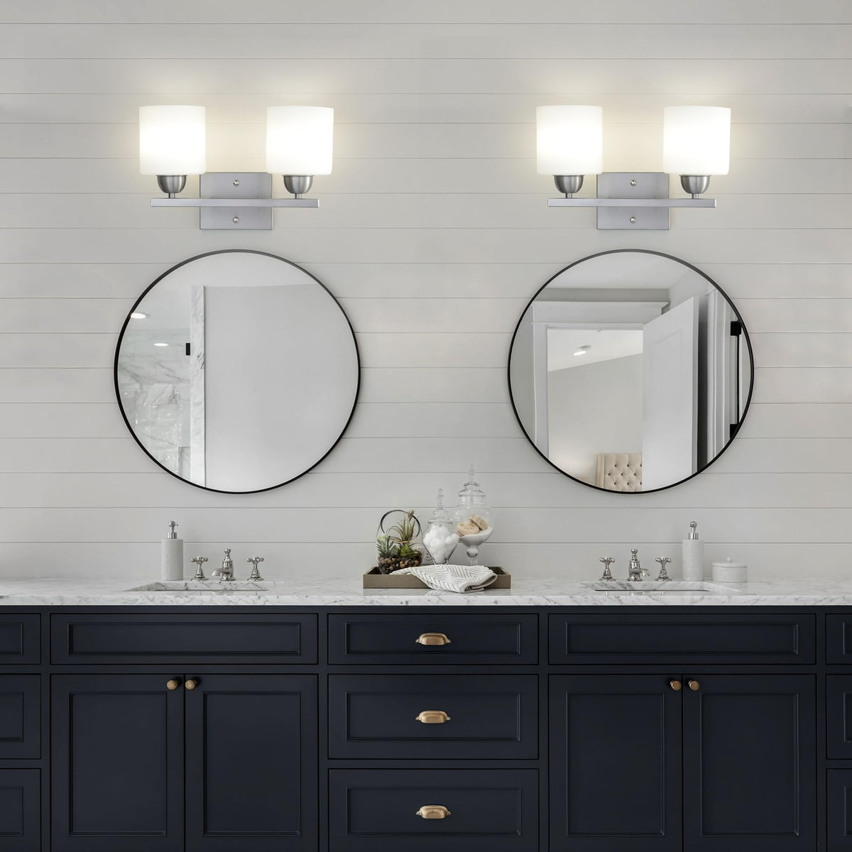 Mecgirn Stainless Steel Milk Glass Bathroom Vanity Light Over Mirror, 2 Light Brushed Nickel Bathroom Light Fixtures With Froste