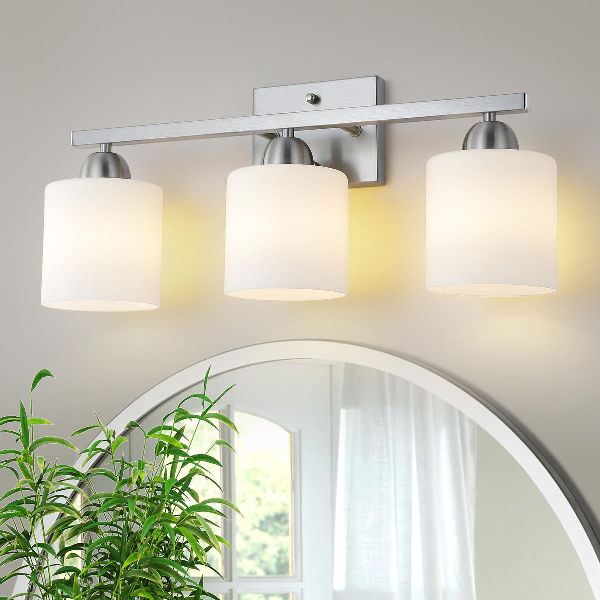 Mecgirn Stainless Steel Milk Glass Bathroom Vanity Light Over Mirror, 3 Light Brushed Nickel Bathroom Light Fixtures With Froste