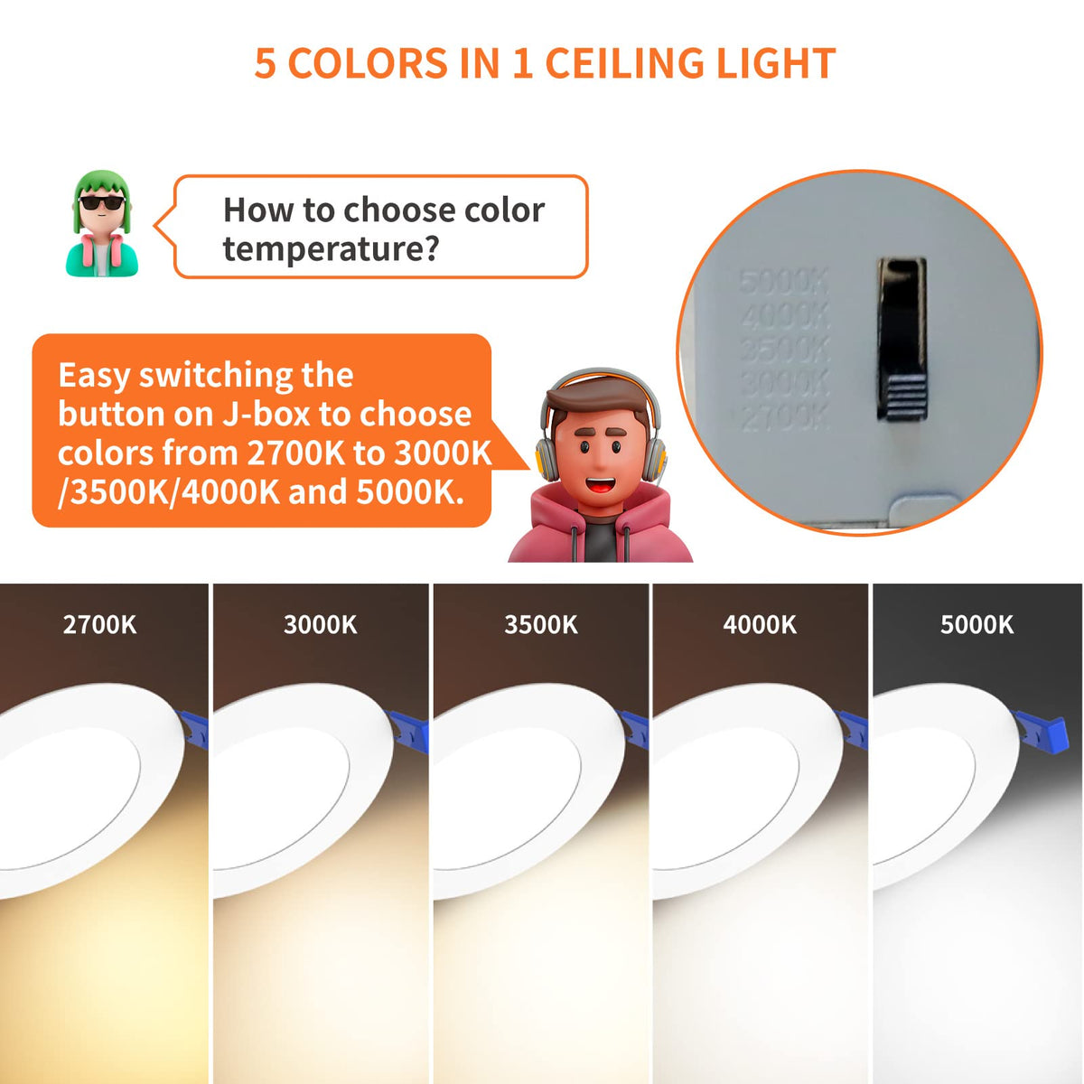 1 Pack 6 Inch Led Recessed Ceiling Light, 2700K/3000K/3500K/4000K/5000K Selectable, Dimmable 12W=110W, 1050Lm, Ic Rated Can-Killer Downlights With Junction Box, Etl And Energy Star Listed