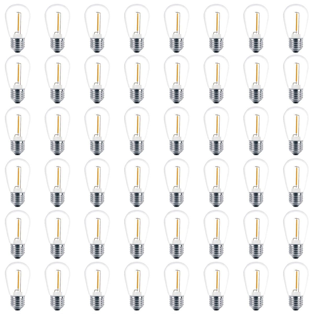 48 Pack S14 LED String Light Bulbs, 1 Watt Shatterproof Replacement bulbs for Patio Outdoor Sting Lights, E26 Medium Screw Base, Warm White 2200K, Non-Dimmable