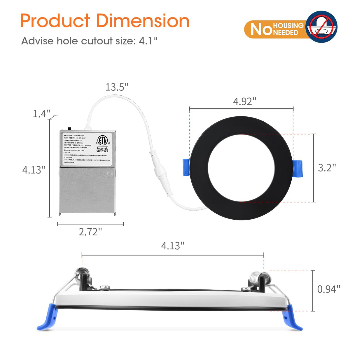 Q: Is the Meconard recessed light safe for insulated ceilings?A: Yes, the Meconard LED recessed light is IC rated, meaning it is safe to be in contact with insulation in ceilings. It is also ETL listed and has a UL-certified wire terminal, ensuring thermal protection.