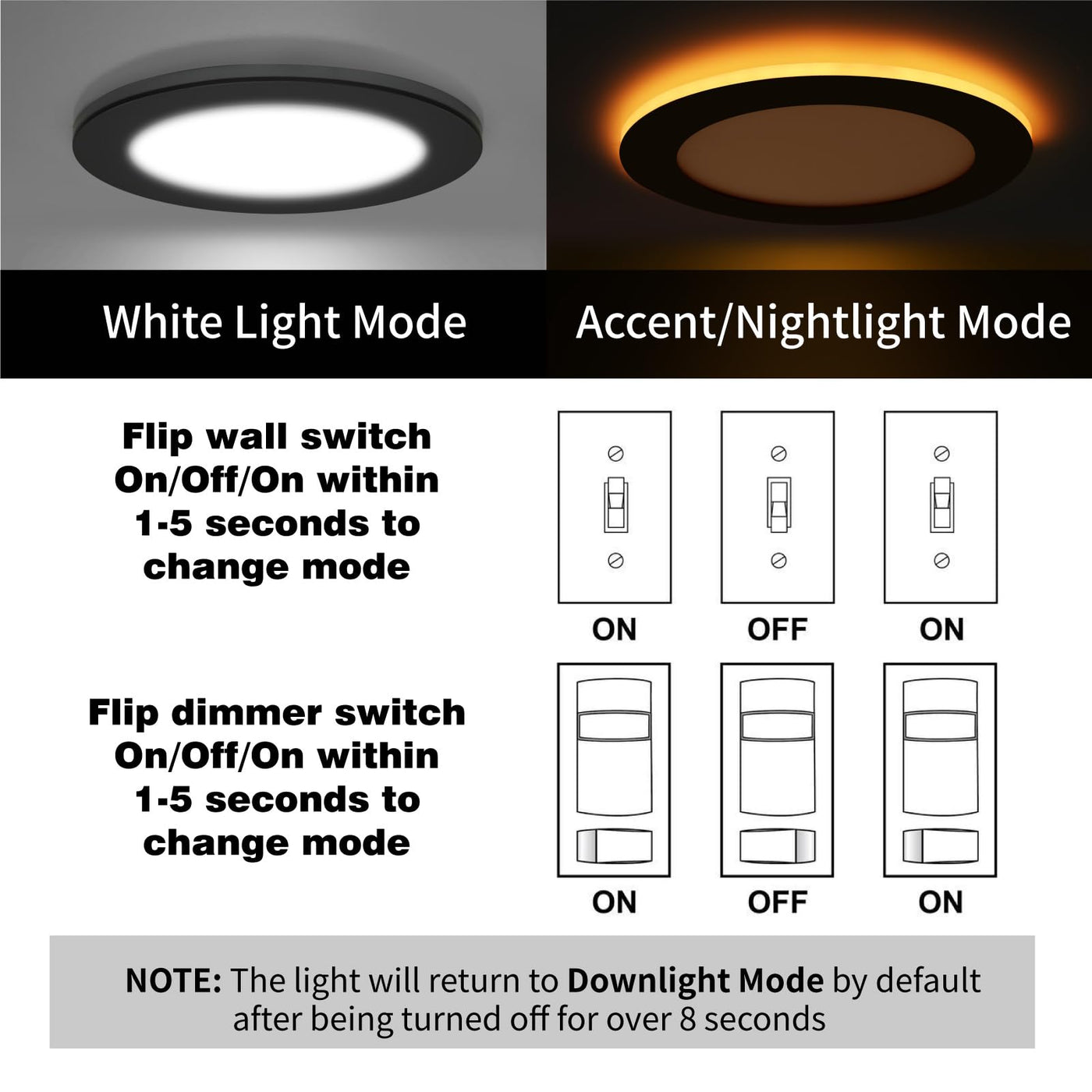 Q: What is the main feature of the Meconard 6 Pack LED Recessed Ceiling Light?A: The main feature of the Meconard 6 Pack 4 Inch LED Recessed Ceiling Light is its night light function, which provides a soft amber glow around the trim of the downlight, activated by your wall or dimmer switch for added ambiance in dark spaces.