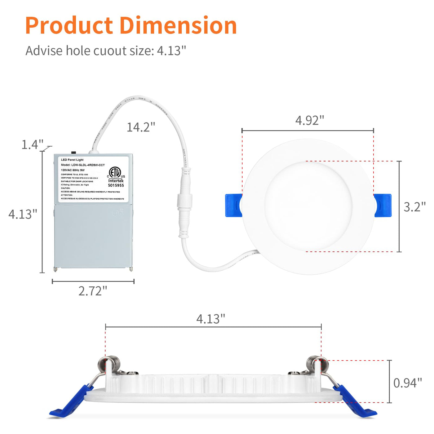 6 Pack 4 Inch 5CCT LED Recessed Lighting with Night Light, 2700K/3000K/3500K/4000K/5000K Selectable Ultra-Thin LED Recessed Ceiling Lights, 9W=75W, 750LM, Dimmable Canless Wafer Downlight