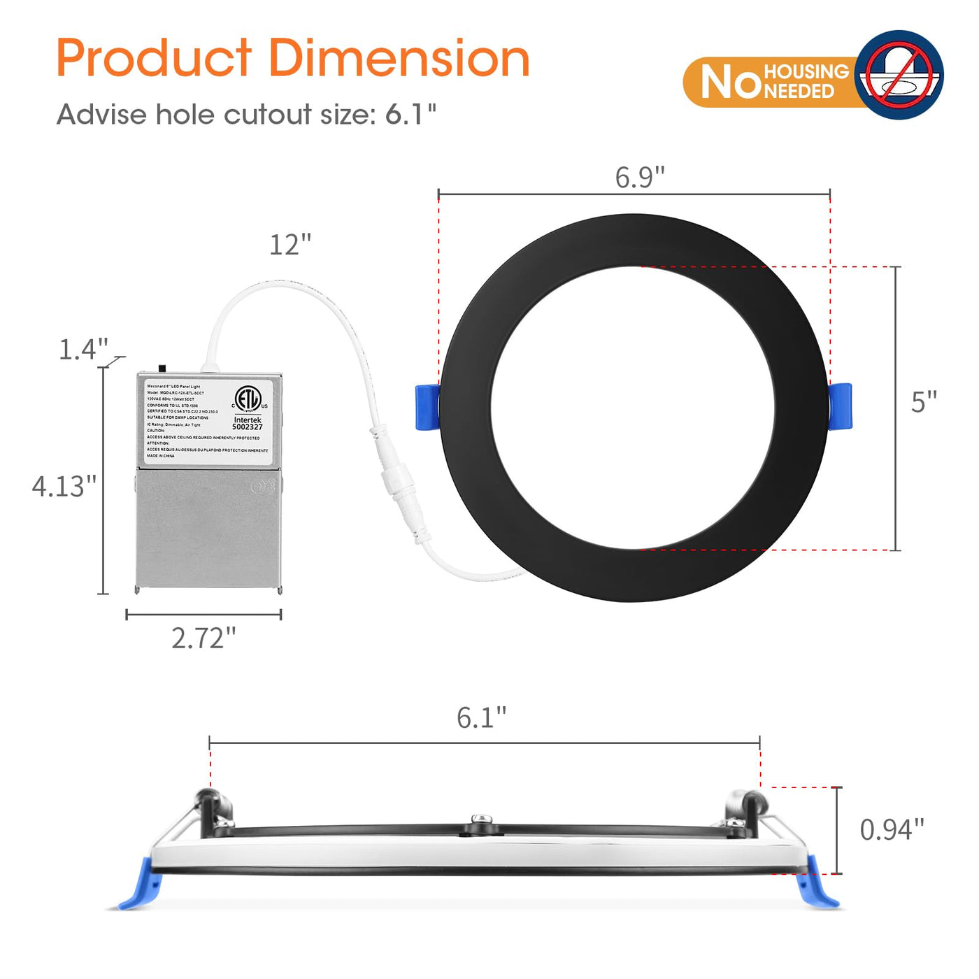 Meconard 6 Pack 6 Inch 5Cct Led Recessed Ceiling Light With Night Light, 2700K/3000K/3500K/4000K/5000K Selectable Ultra-Thin Lig
