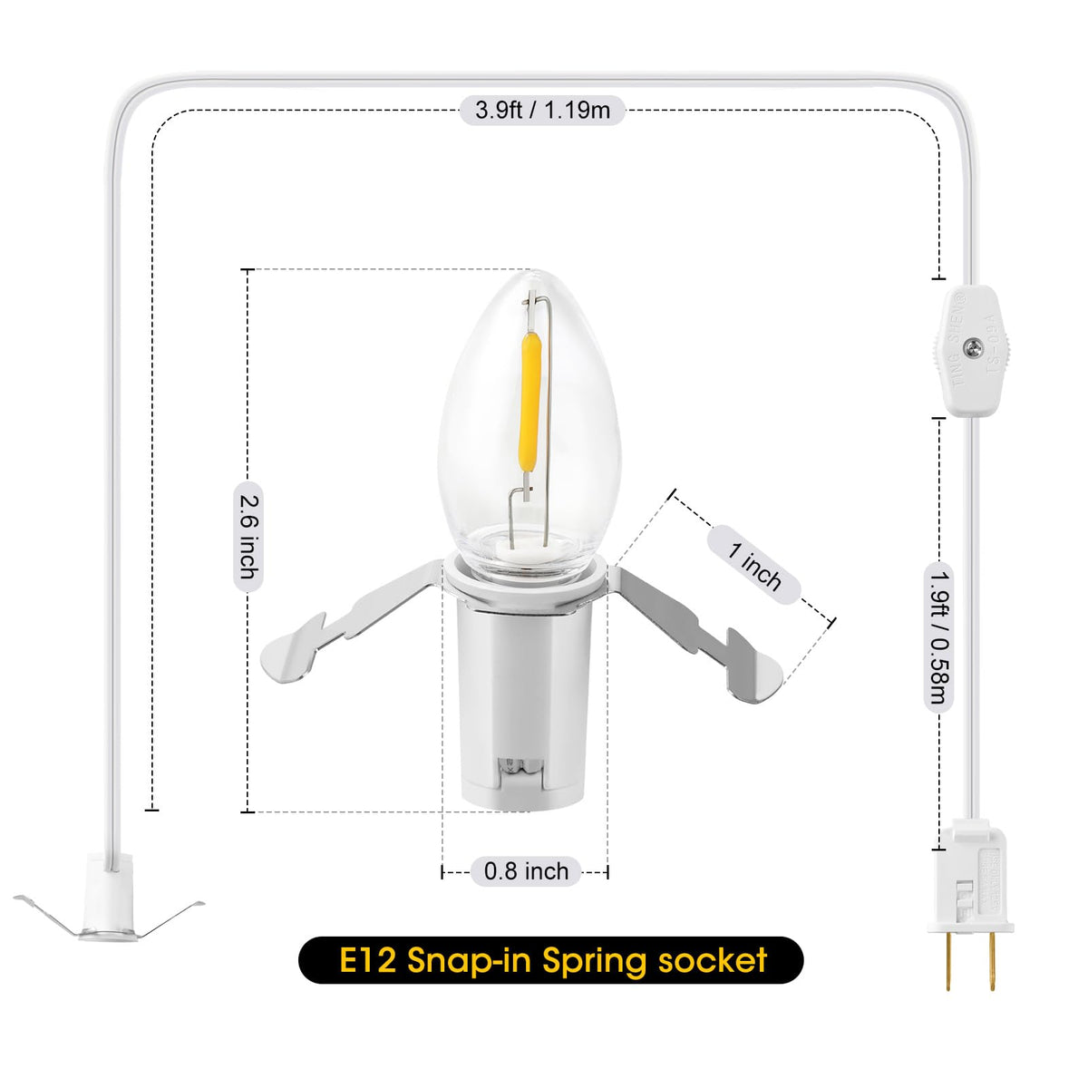Meconard Accessory Cord with C7 LED Light Bulb, 6ft Cord with On/Off Switch for Christmas Village House, Halloween Pumpkin, Blow Mold, Night Lights, Holiday Ceramic Trees, Craft Projects, 2 Pack