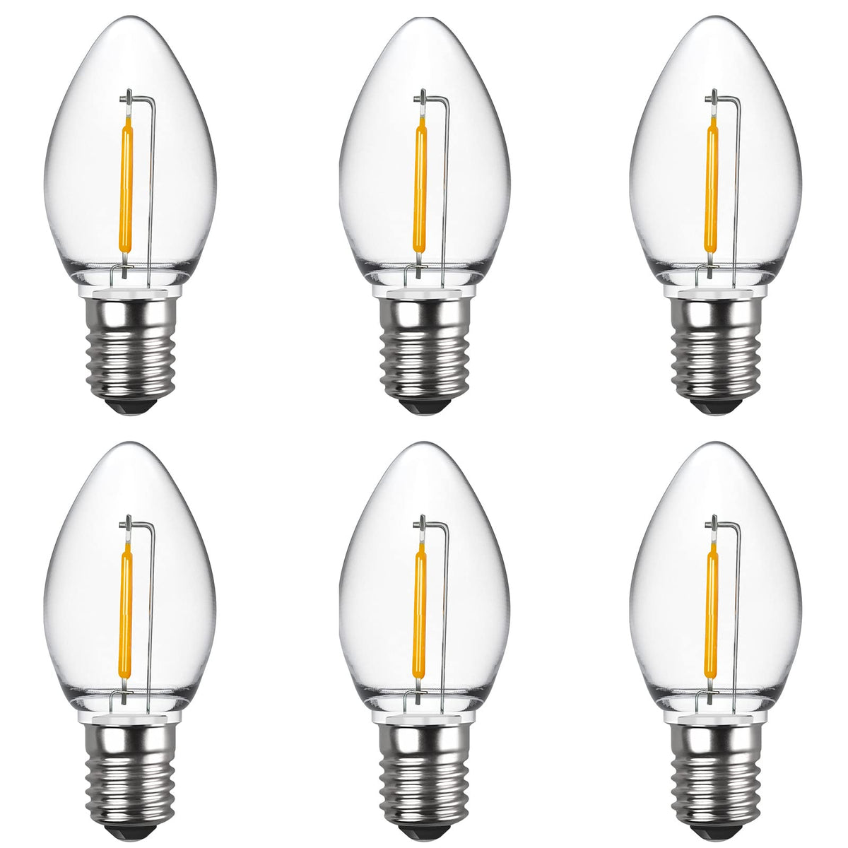 C7 LED Night Light Bulbs, Shatterproof LED Replacement Bulbs for Window Candles & Chandeliers, E12 Candelabra Base, 0.6 Watt Equivalent to 7Watt Incandescent Bulb, Warm White ,6 Pack