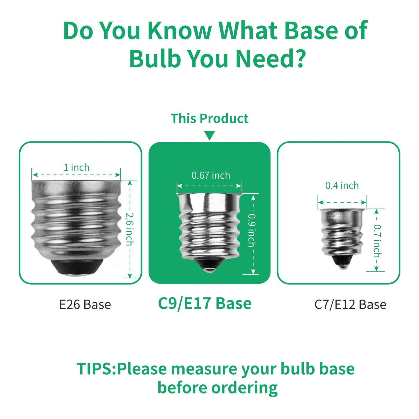 Q: What type of sockets are compatible with these LED light bulbs?A: The Meconard C9 LED bulbs are compatible with E17 intermediate base sockets, which is the standard for C9 light bulb installations. This allows them to easily fit into most existing string light setups.