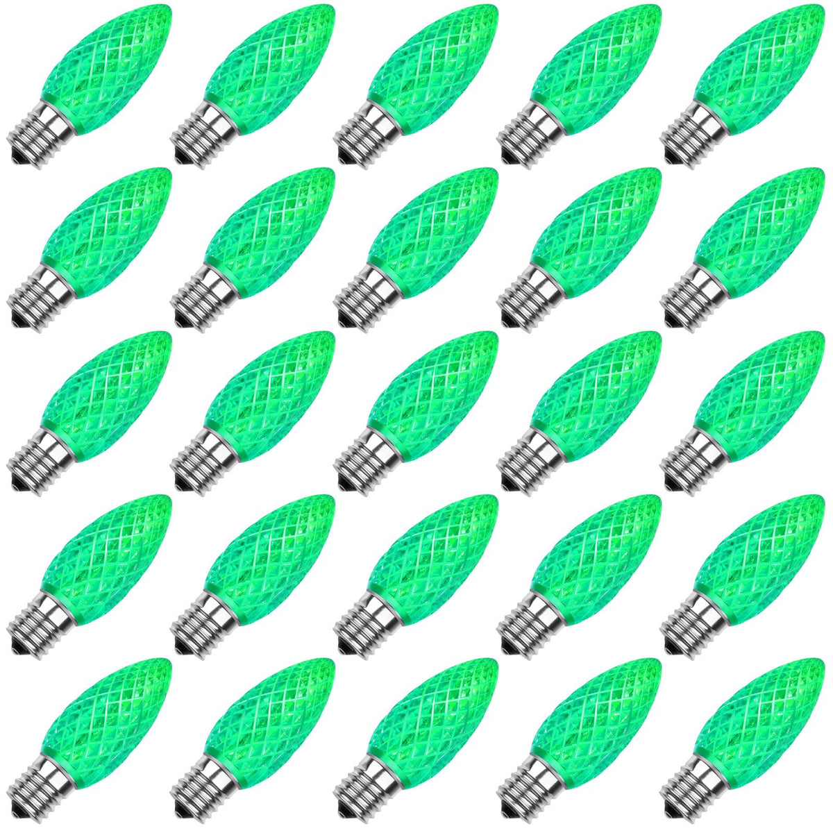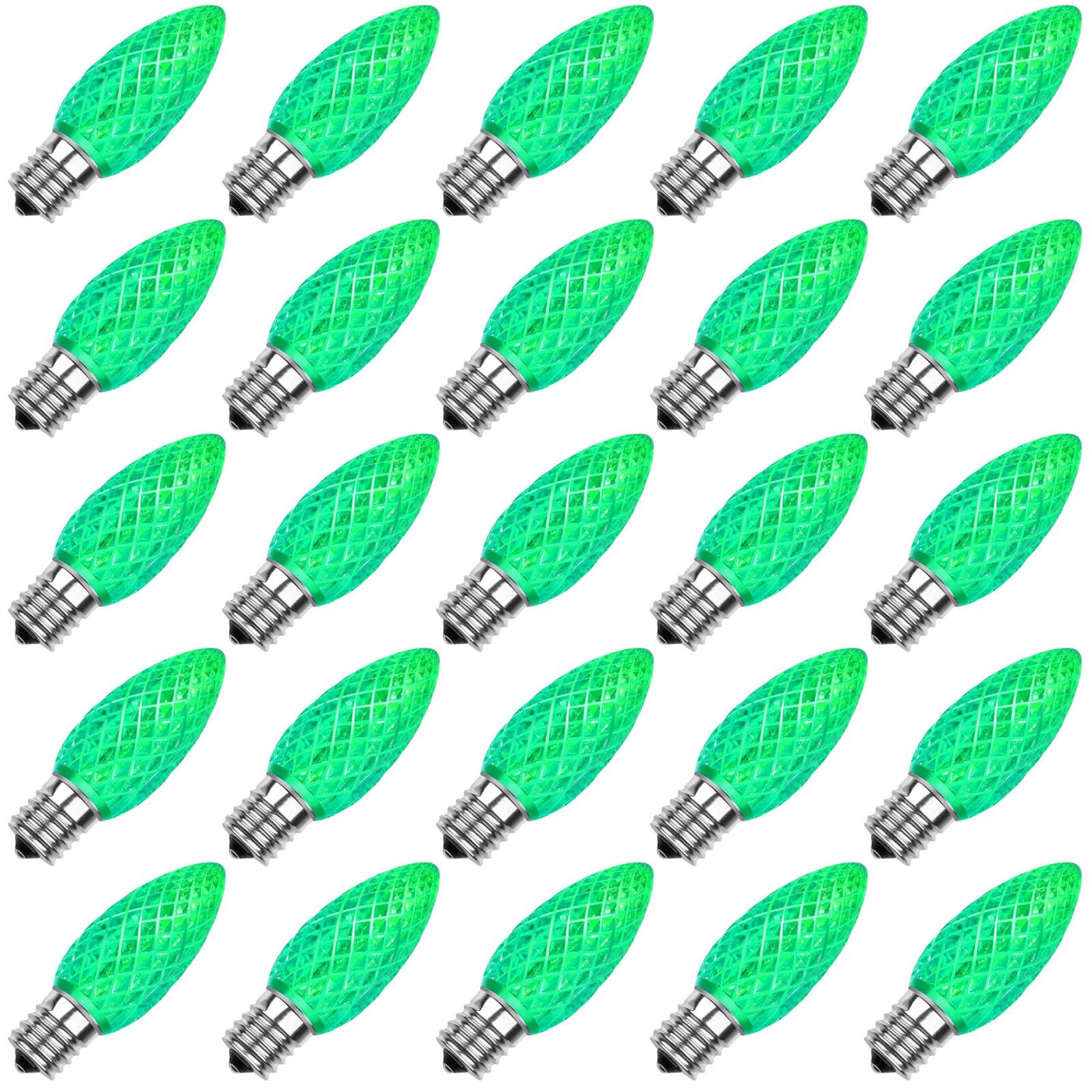 C9 Led Replacement Christmas Light Bulbs, C9 Shatterproof Led Bulbs for Christmas Indoor Outdoor String Lights, E17 Intermediate Base, Commercial Grade Holiday Bulbs, Green, 25Pack