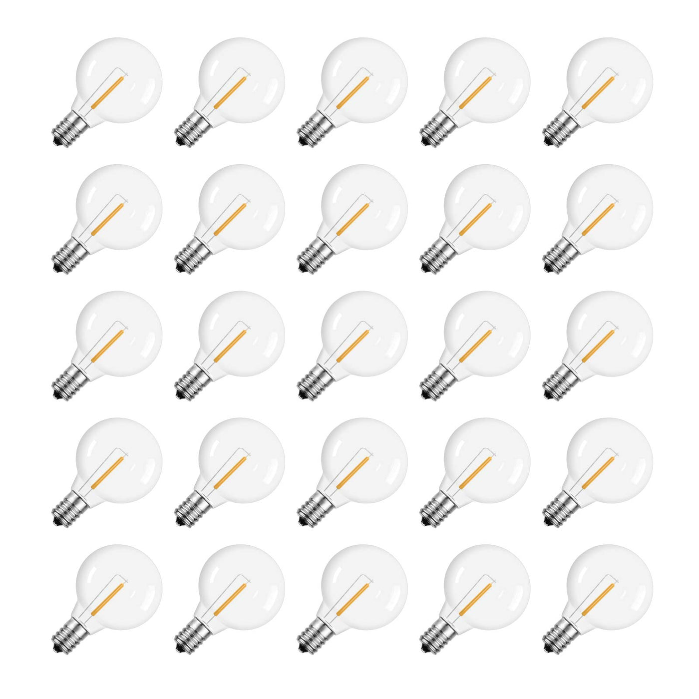 G40 Led Light Bulbs Replacement, E12 Screw Base Shatterproof Led Globe Light Bulbs for Outdoor String Lights, 1 Watt Equvalent to 5 Watt Incandescent Bulbs, Warm White, 25 Pack