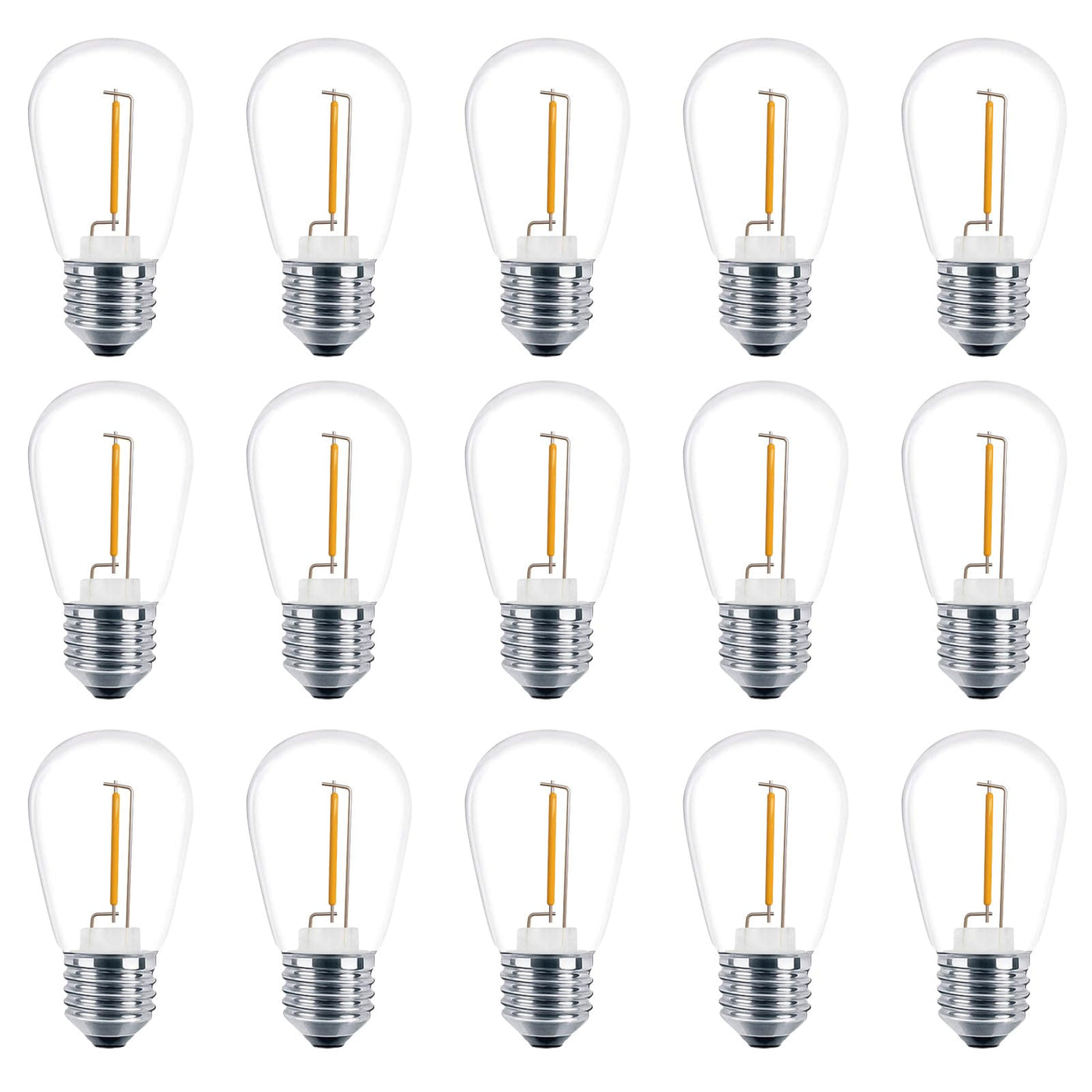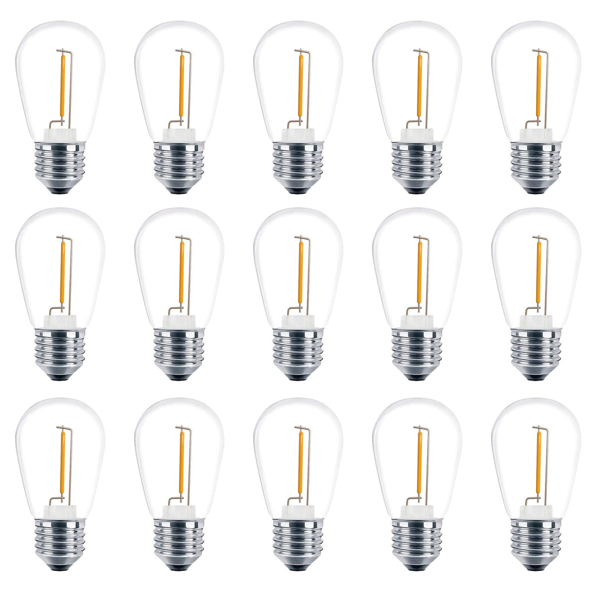 Meconard Shatterproof LED S14 Replacement Light Bulbs,E26 Medium Screw Base, Vintage Edison Bulbs Equivalent to 11 Watt, Fits for Commercial Outdoor Patio String Lights, 2200K Warm White, 15 Pack