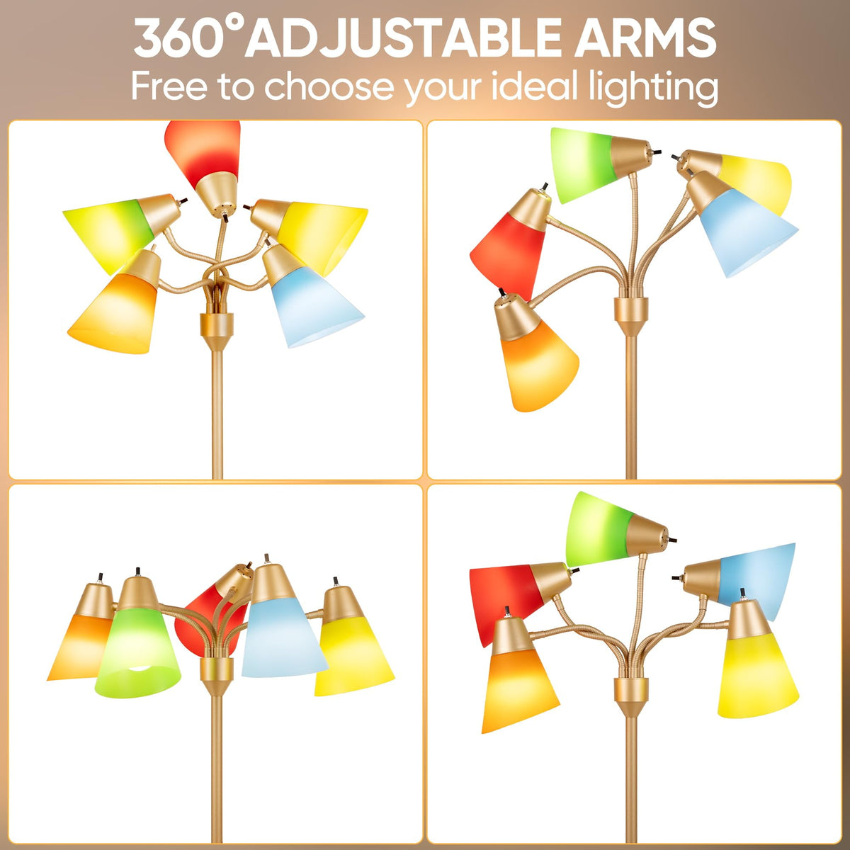 The five lamp arms are individually adjustable, while each lamp also has a separate switch to control. It can be adapted to a 3-color temperature bulb with a base of E26 and a maximum wattage of 60W.