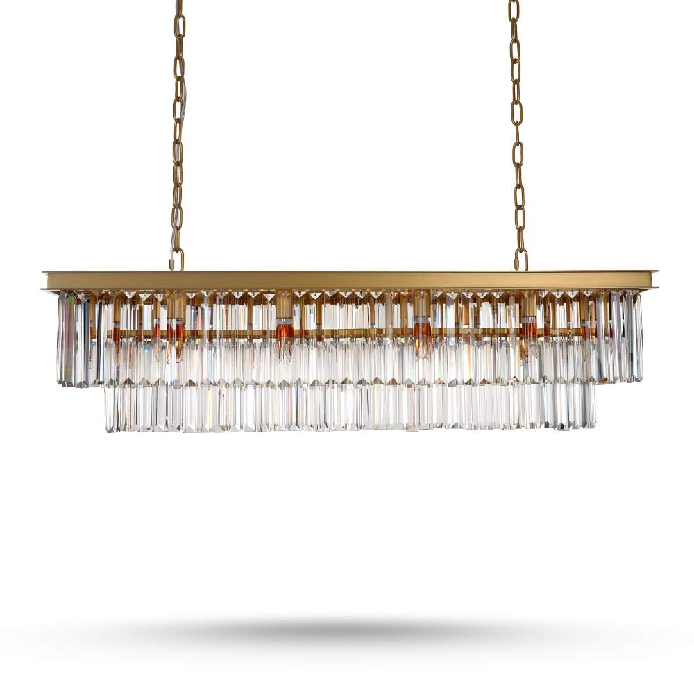 Meelighting L39.4 W10.2 Gold Rectangle Modern Crystal Chandeliers Lighting Pendant Ceiling Lights Fixture Lamp For Dining Living Room