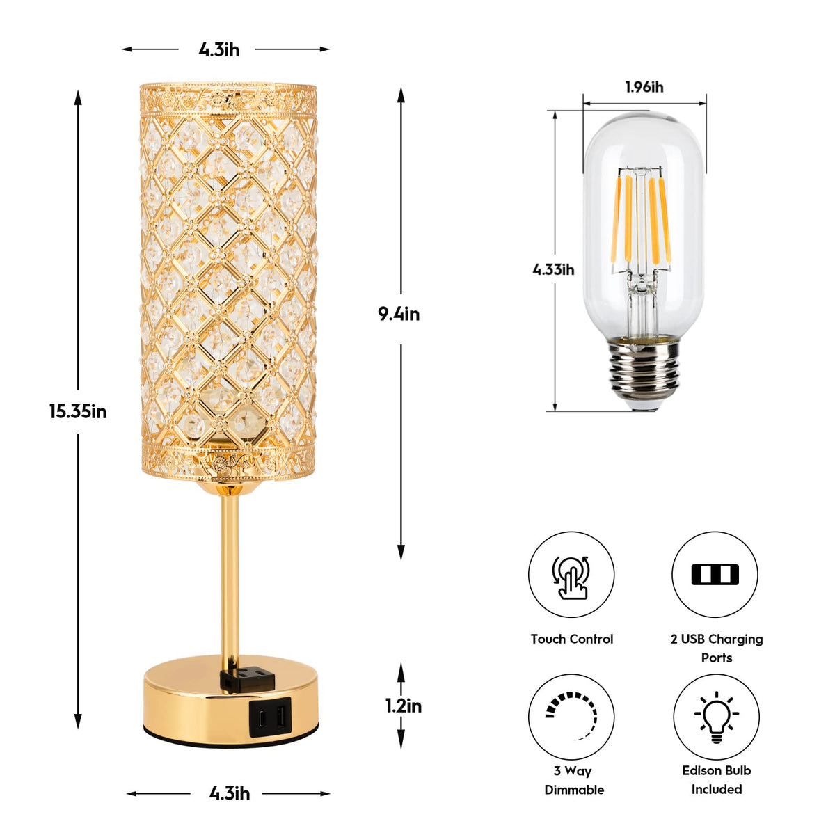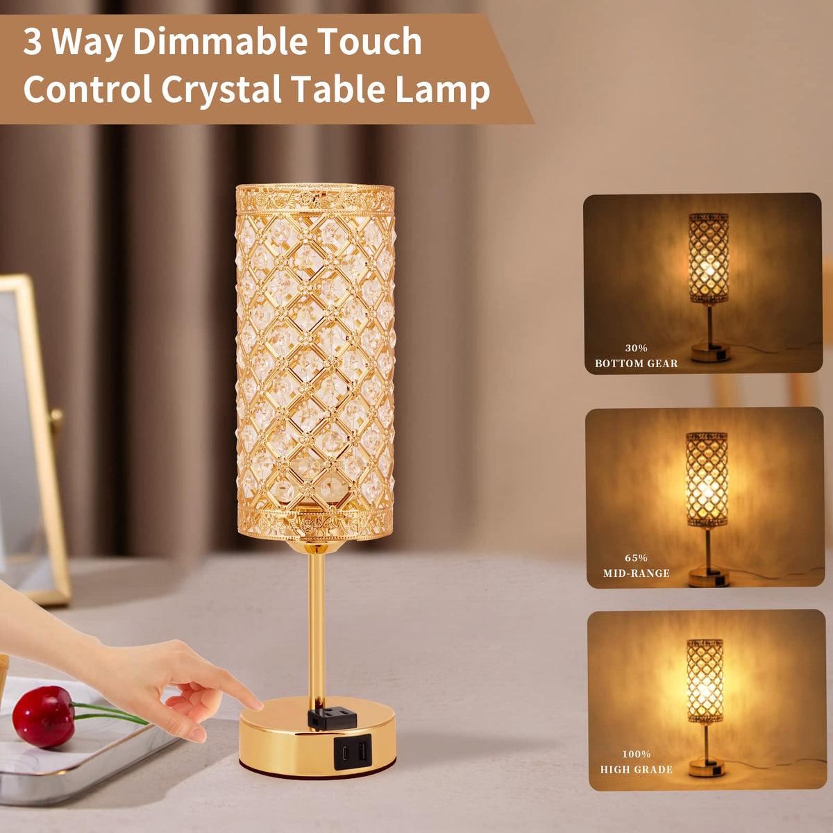 - **Modern Gold Touch Lamp Design**: Crafted with 109 meticulously cut K9 crystals, this lamp showcases an elegant and contemporary aesthetic. Its classic design complements any decor style, making it an ideal decorative table lamp for end tables, dining areas, coffee tables, or bedrooms. The disassemblable crystals add versatility to your home decor.