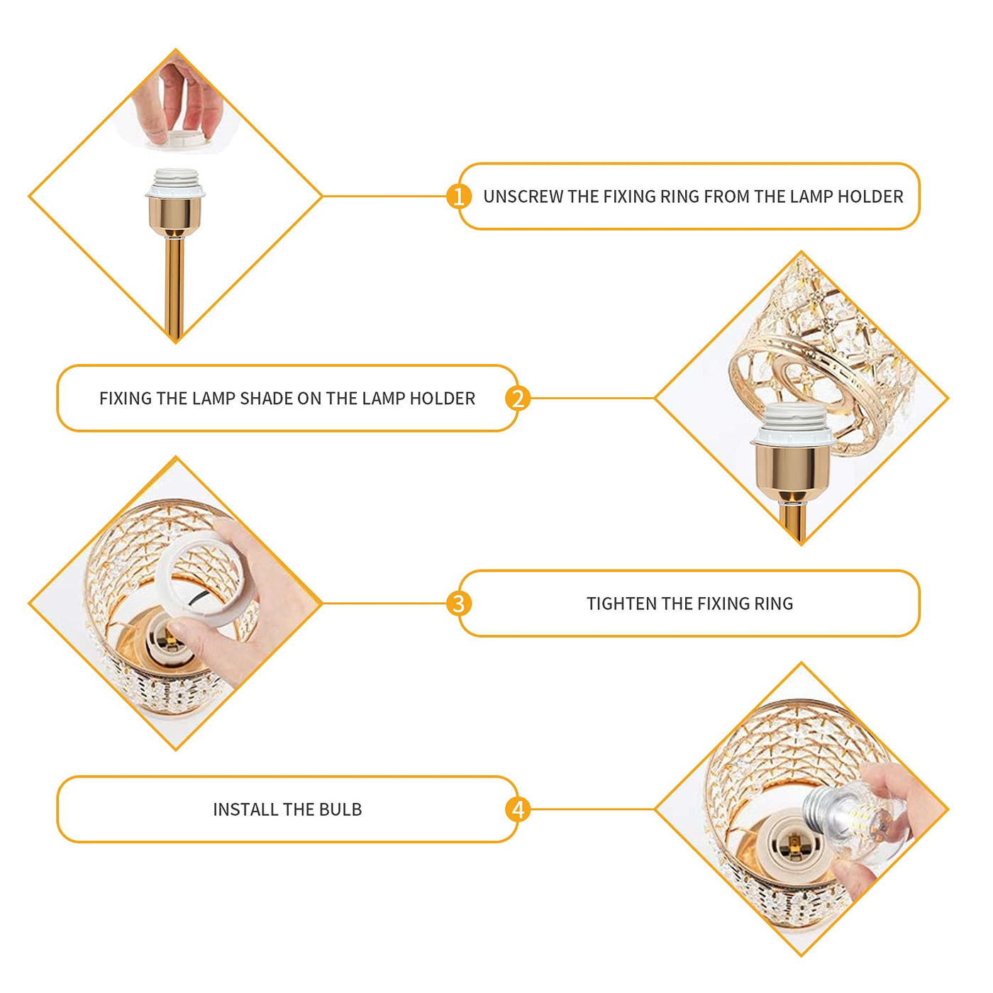Q: Can the lamp be used as a decorative piece?A: Absolutely! The modern gold design and elegant K9 crystal cuts make this lamp a stylish decorative table lamp that fits well in any home decor, enhancing the aesthetics of your living room, bedroom, or office.