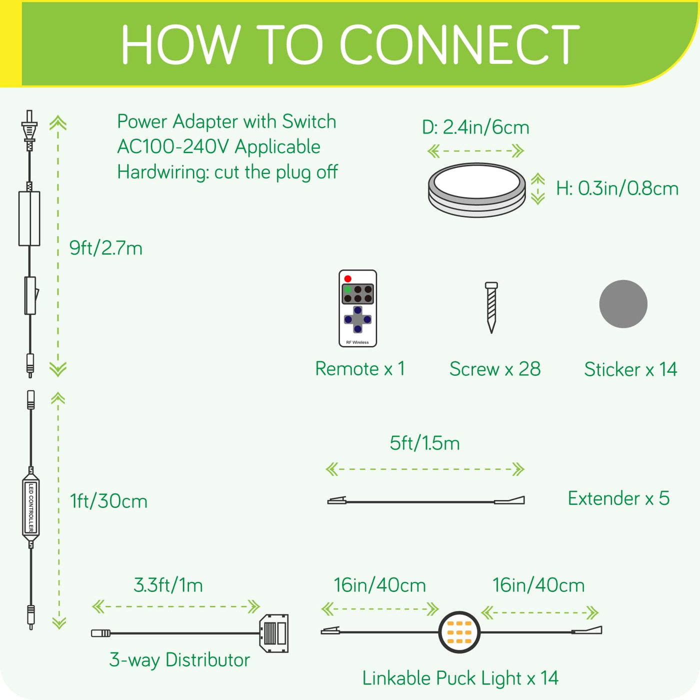 Meigour Hardwired Under Counter Puck Light, Linkable Daisy Chained Wireless Remote Control Dimmable LED Closet Lights, 110V Dire
