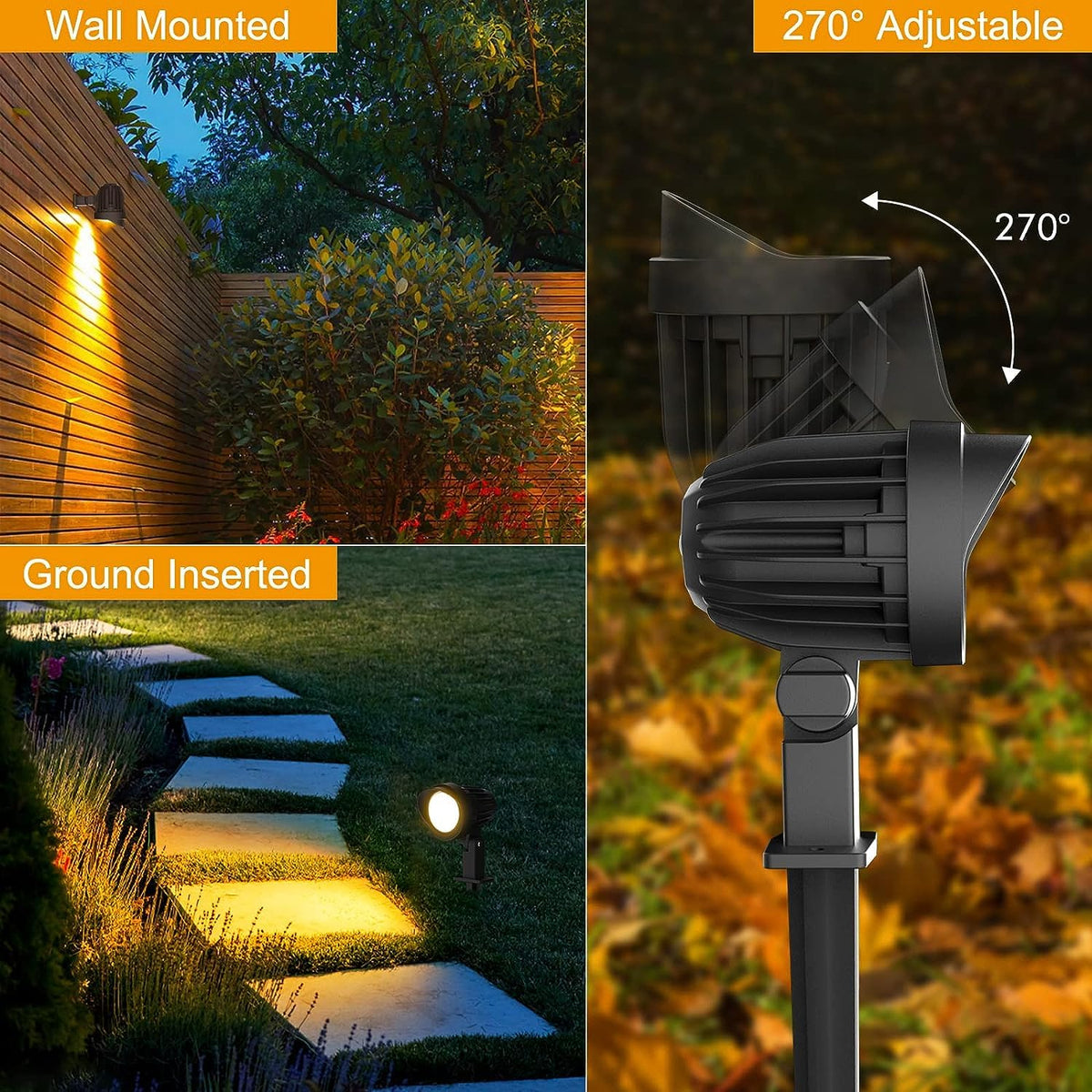 - **Adjustable Lighting for Versatility:** The innovative 270° adjustable head allows you to direct light precisely where needed, making it perfect for highlighting walls, trees, fences, or any feature in your outdoor space. Effortlessly enhance the beauty of your garden, driveway, or pathway.
