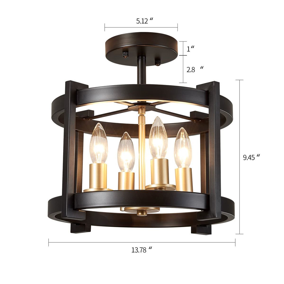 Adhering To The Concept Of Pursuing The Quality Of Life, Meixisue Designs Various Styles Of Lamps To Enhance The Taste And Style Of Home Decoration,Regardless Of The Angle Of View Of This Black+Gold Ceiling Light Fixture, The Outer Circle Is Parallel, And The Interior Is Designed With Four Hollow Candlestick Bulbs, Which Has A Strong Sense Of Space. Simple And Retro, It Is A Suitable Choice For Your Ceiling