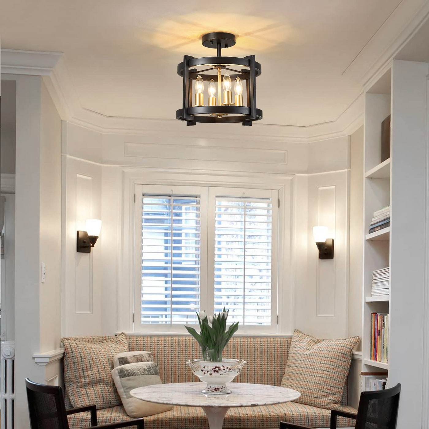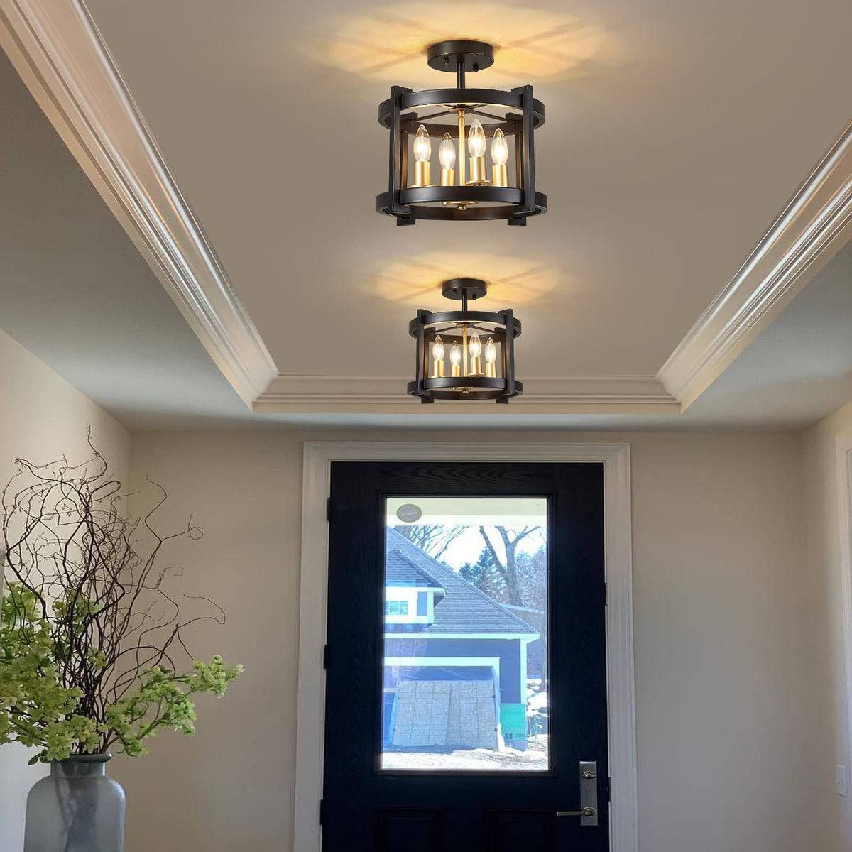 Meixisue 4-Light Semi Ceiling Light Flush Mount Bk+Gd Farmhouse Rustic Vintage Antique Ceiling Light Fixture For Hallway Entrywa
