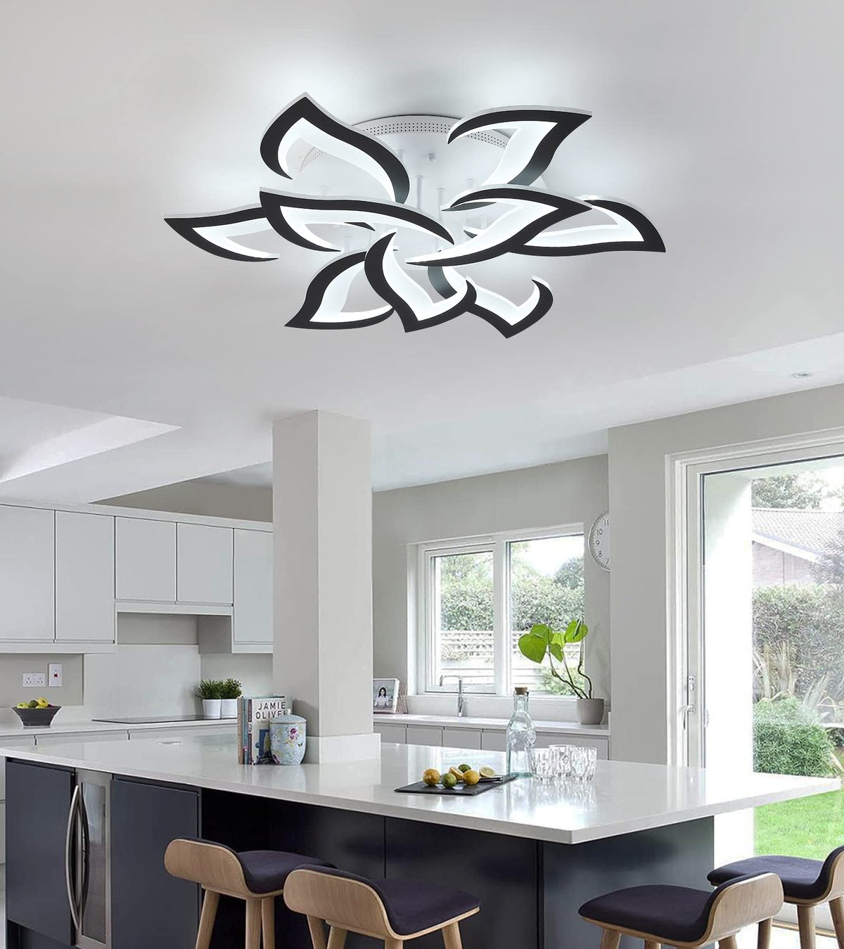 Meixisue Ceiling Light Fixture Modern Black Led Flower Light Fixtures Ceiling Mount With Remote Control For Living Room, Bedroom
