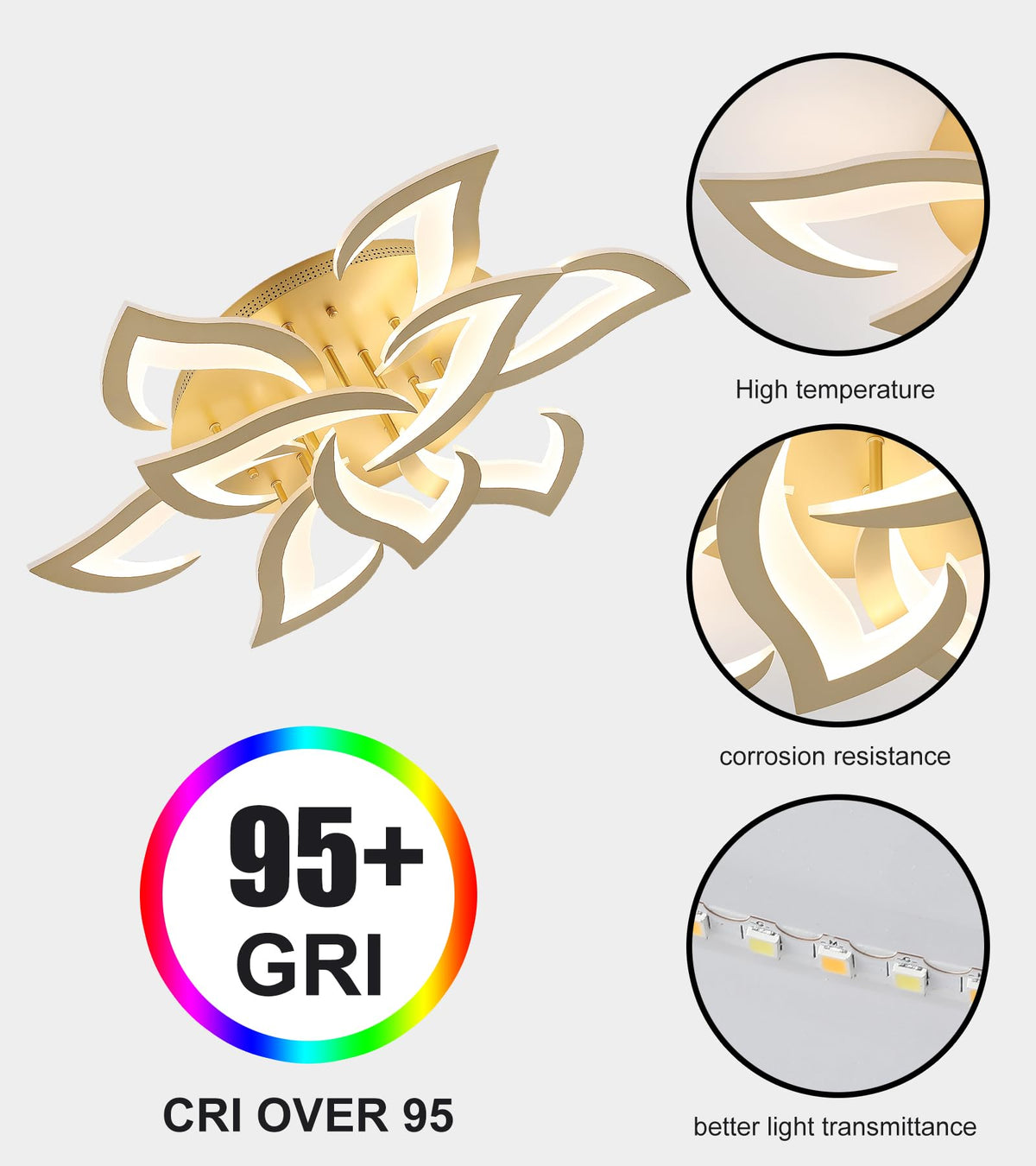 Meixisue Led Ceiling Light Gold Dimmable Close To Ceiling Lamp With Remote Control For Living Room,Bedroom,Kitchen,W31.5