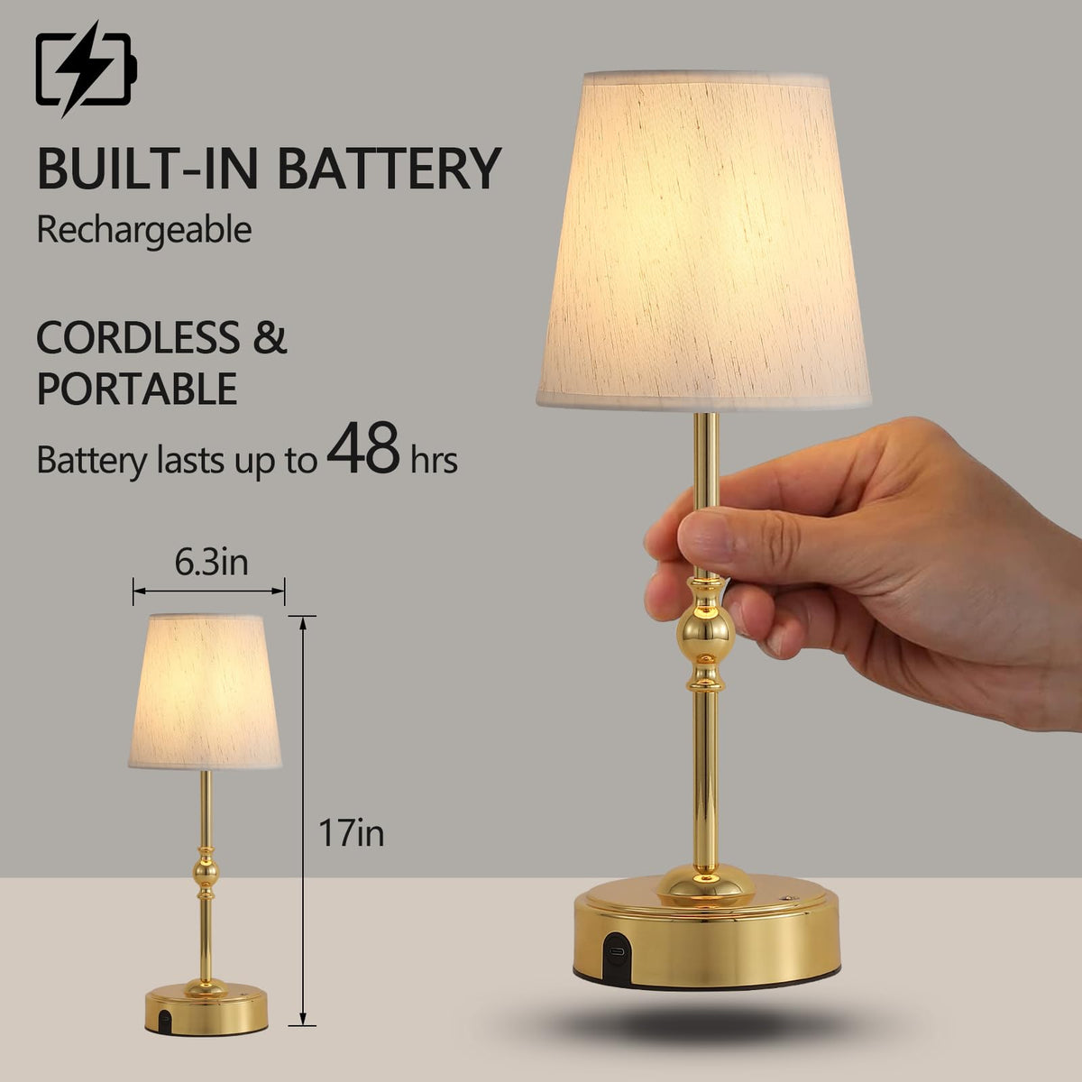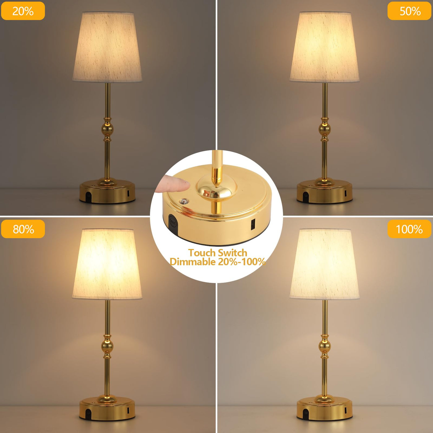 Cordless Rechargeable Table Lamp,Gold Bedside Night Lamp 10000 Mah Battery 30 Hours Operated Patio Outdoor Desk Lamp Dimmer For Bedroom Dorm Bars Party Camping Rv