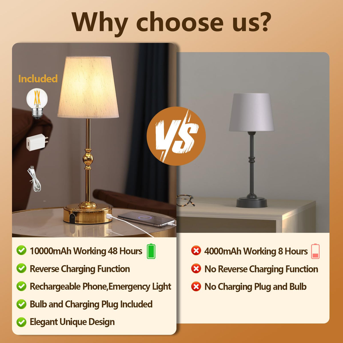 Meixisue Portables Cordless Led Table Lamp With Dimmer,Outdoor Gold Desk Lamp10000Mah Wireless Rechargeable Battery Nightstand L