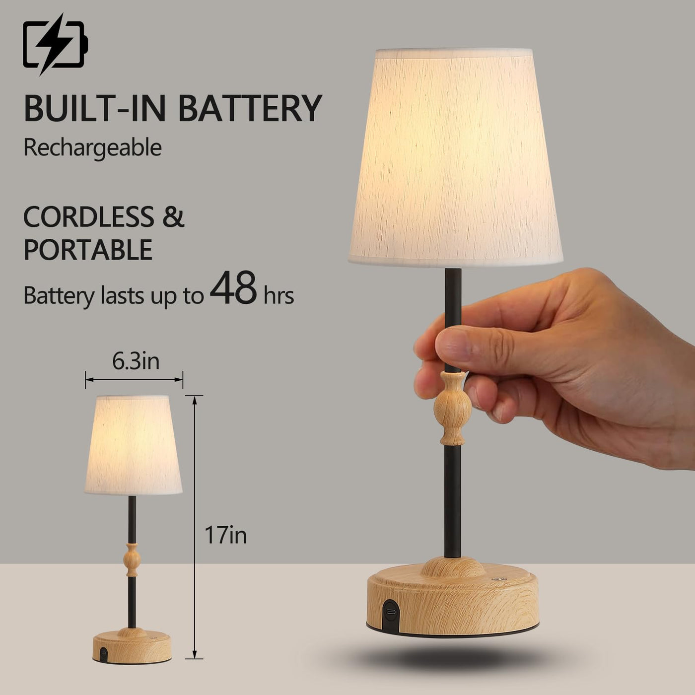 Q: What are the dimensions of the lamp?A: The MEIXISUE Cordless Table Lamp has a height of 17 inches and a width of 6.3 inches, making it a perfect portable size for various settings.