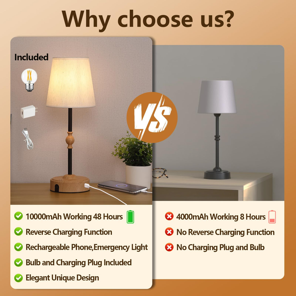 [Portable Cordless Design]This Is A Practical Cordless Led Table Lamp With Sleek Simple Modern Classic Design,The Cordless Led Desk Lamp Has A Built-In Rechargeable Battery Of 10000Amh,Which Can Last For Up To 48 Hours (At The Lowest Brightness Setting) After Each Charge.Due To Battery Lamps Portability,Rechargeable And Durability,Patio Table Lamp Can Be Used As An Emergency Light In Case Of Sudden Power Outages.Whether Indoors Or Outdoors,Rechargeable Lamp Is The Best Warm Battery Opreated Lamp That Combines Functionality And Decoration.