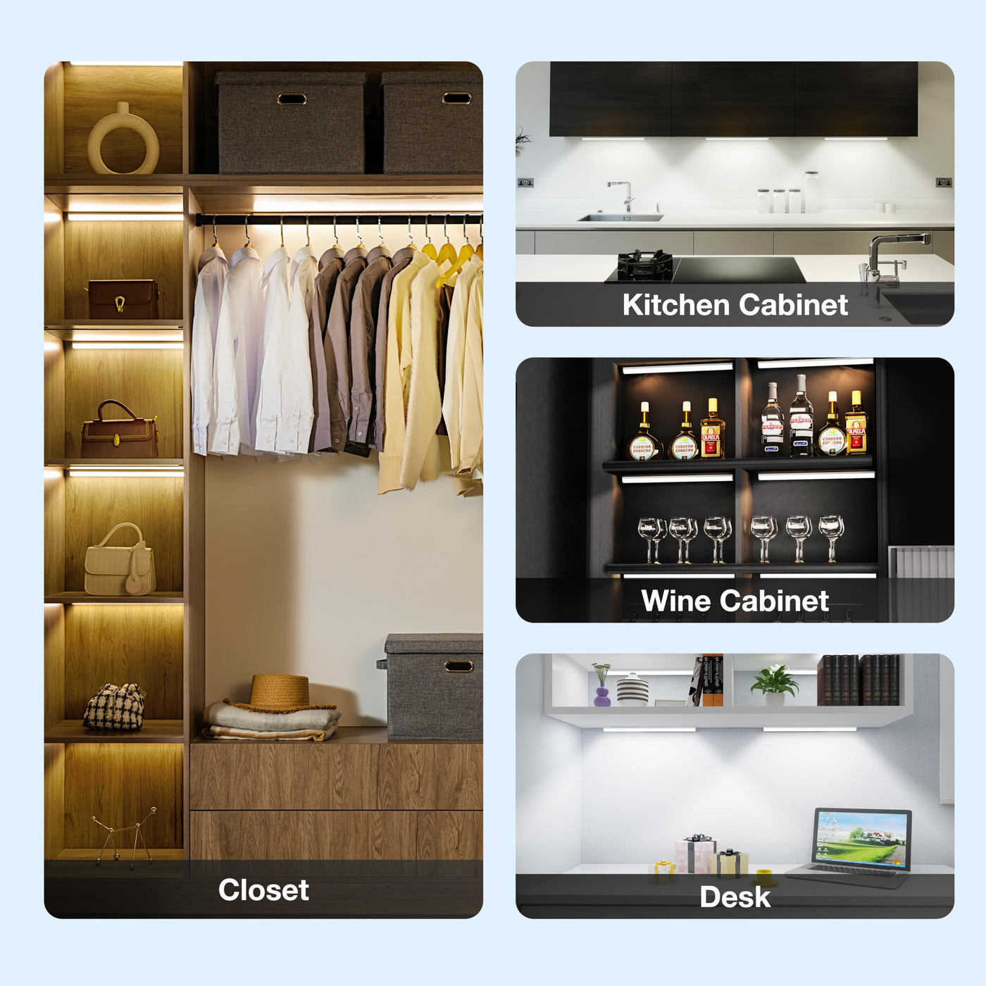 Mekkleon Under Cabinet Lights Remote Control,2 Pack Magnetic Dimmable Closet Lights,Usb Rechargeable Wireless Led Shop Light,Cei