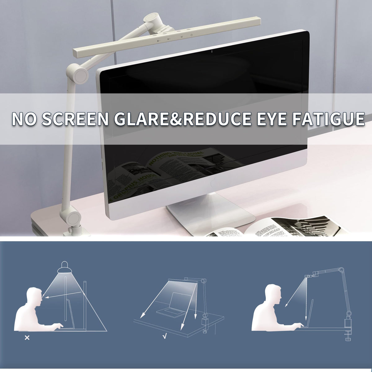 LED Desk Lamp with Clamp,Monitor Light Bar,Eye-Caring Desk Light,Ultra High Definition and Brightness Table Light,4 Modes 12 Brightness,No Screen Glare&Reduce Eye Fatigue for Reading,Study.
