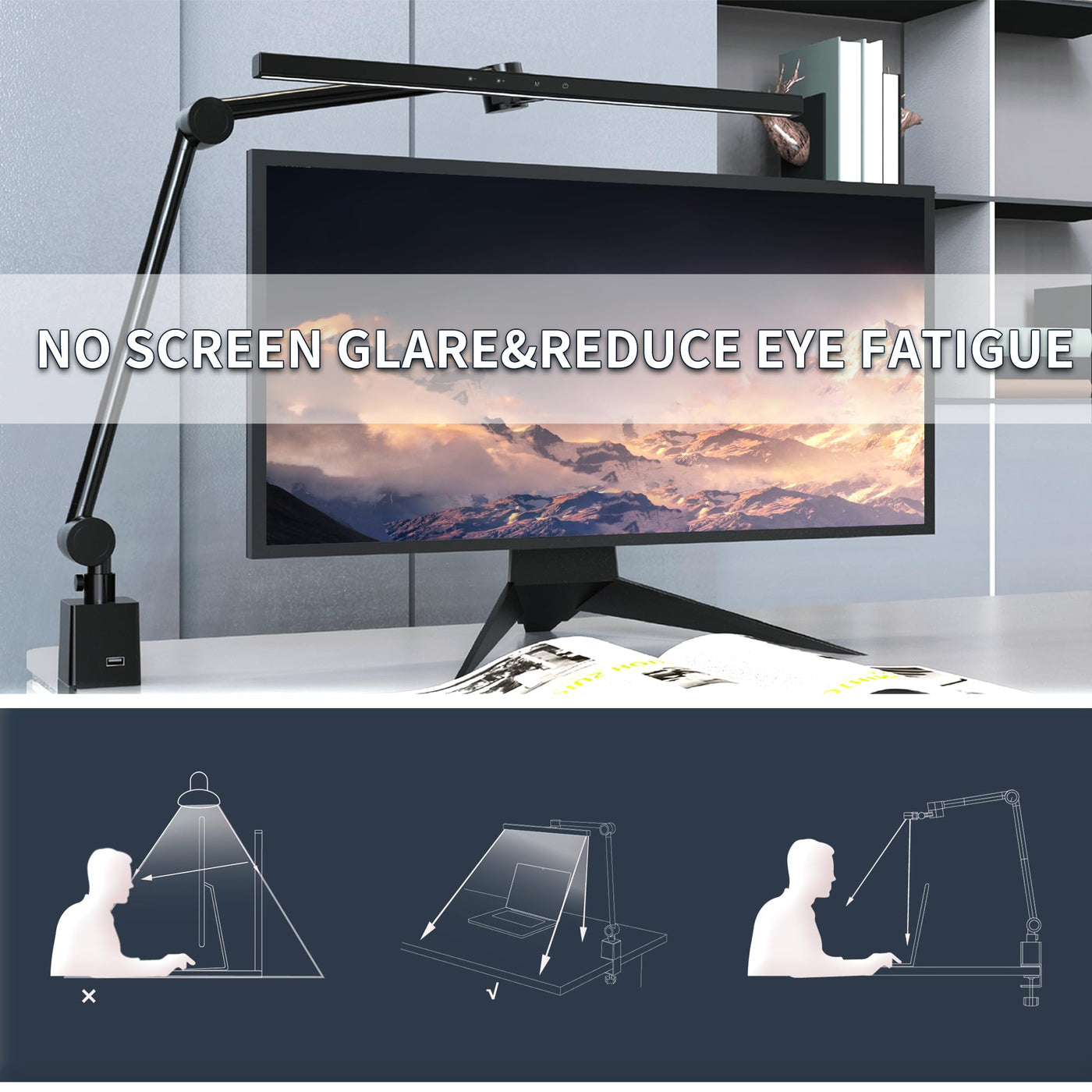LED Desk Lamp with Clamp,Monitor Light Bar,Eye-Caring Desk Light,Ultra High Definition and Brightness Table Light,4 Modes 12 Brightness,No Screen Glare&Reduce Eye Fatigue for Reading,Study.