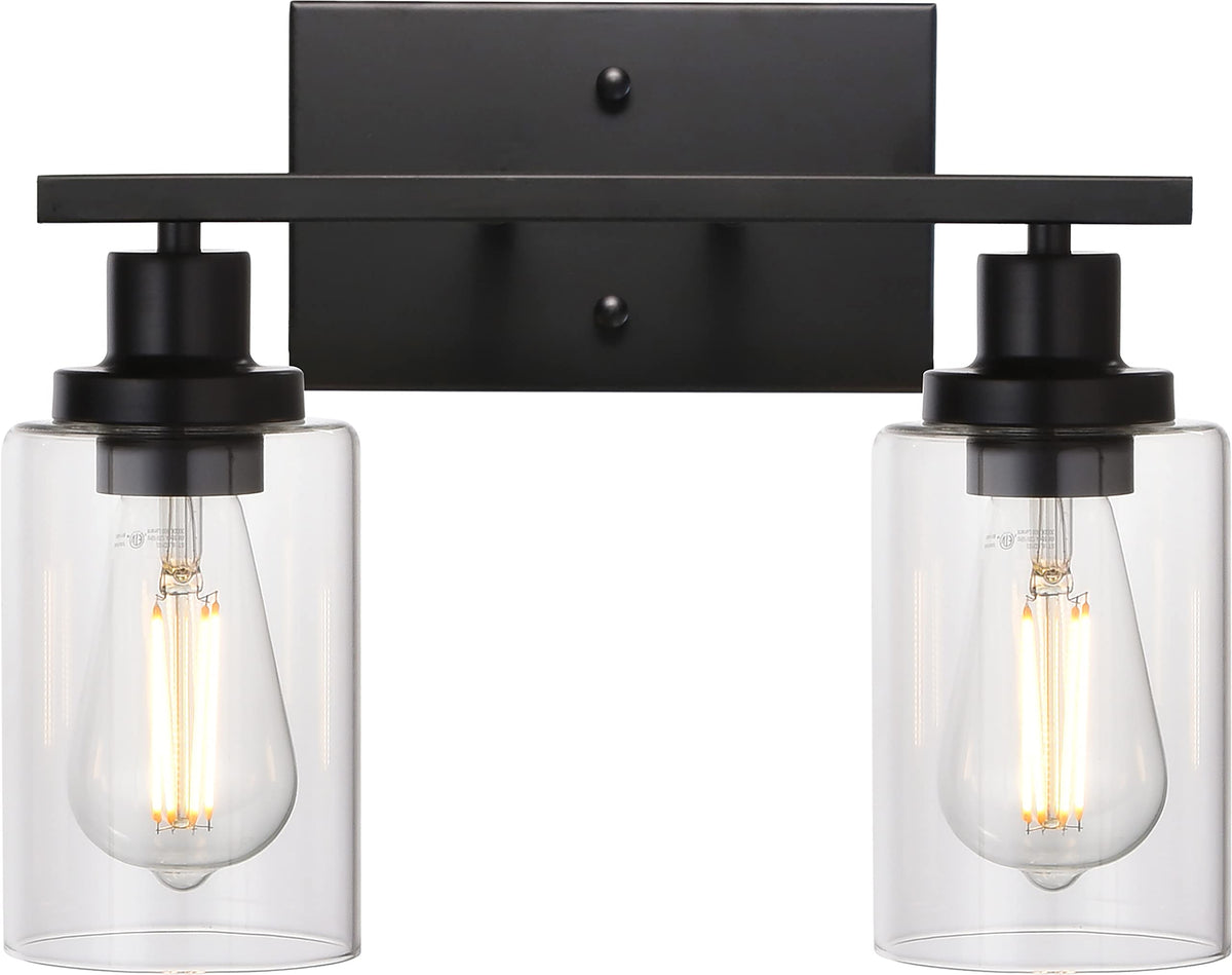 Melucee 2-Light Black Wall Sconce Industrial Vintage With Clear Glass Shade And Metal Base, Bathroom Vanity Lights Hallway Light Fixture Sconces Wall Lighting