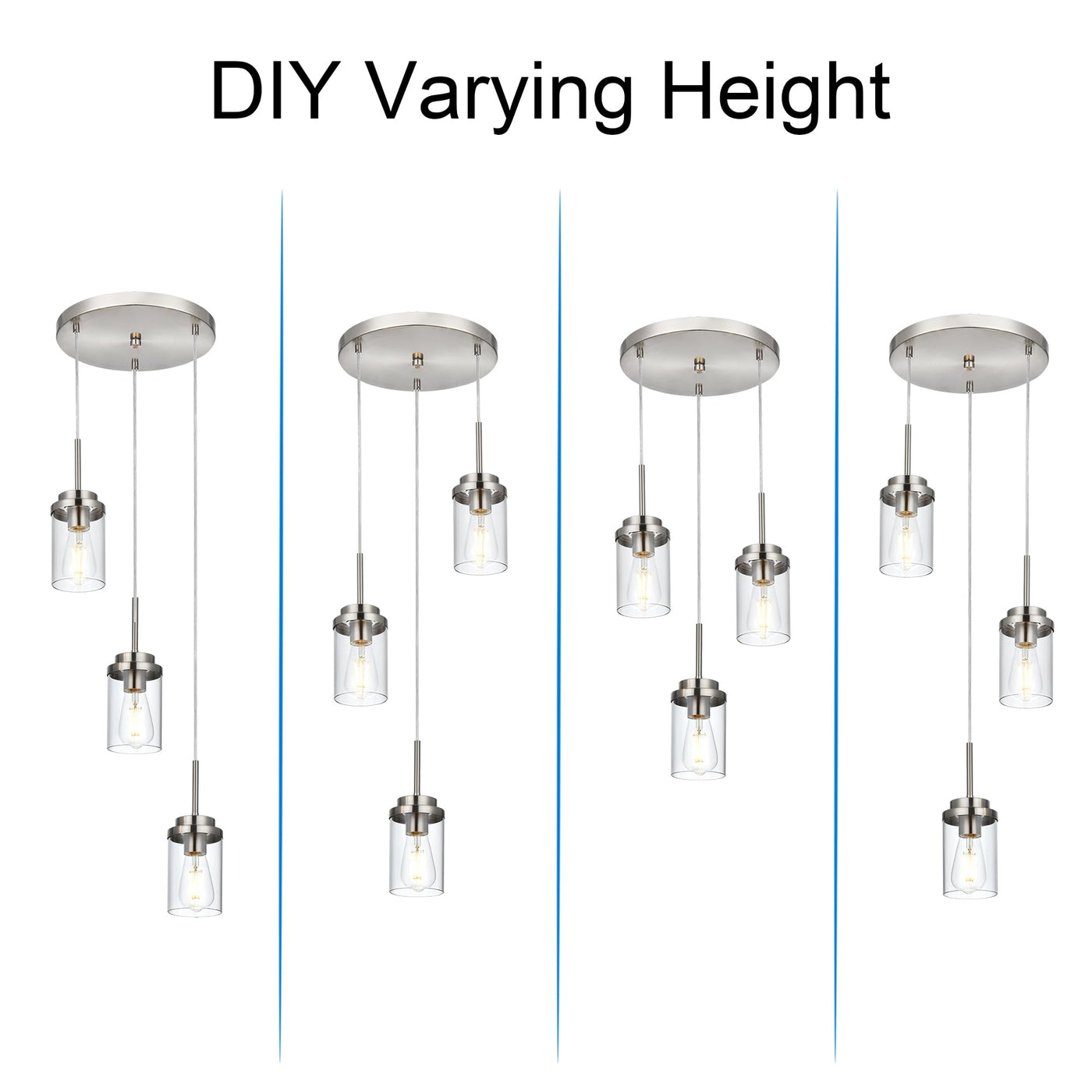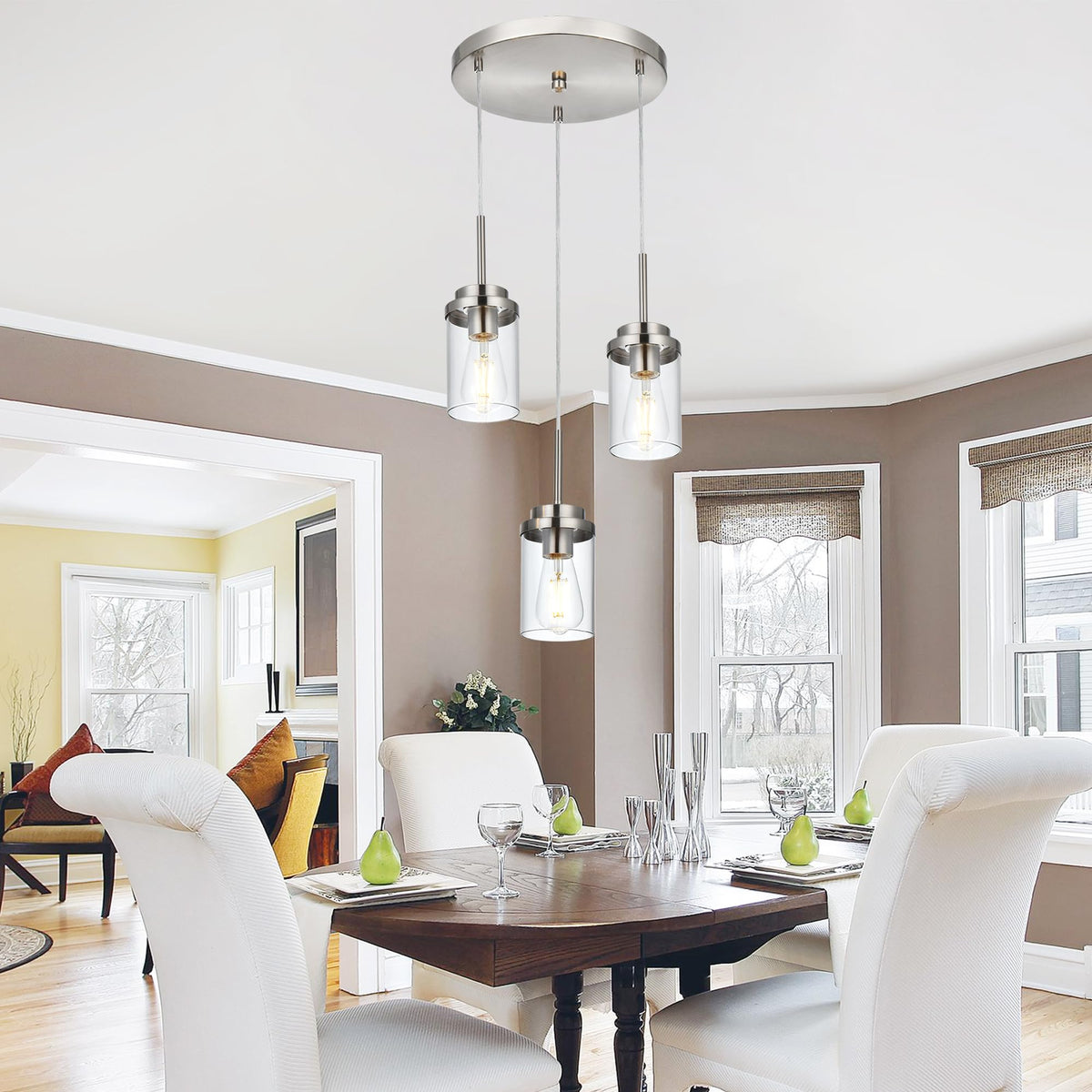 MELUCEE 3-Light Hanging Chandelier Light for Dining Room in Brushed Nickel, Modern Kitchen Island Pendant Lighting Adjustable Hanging Ceiling Lamp with Clear Glass Shade