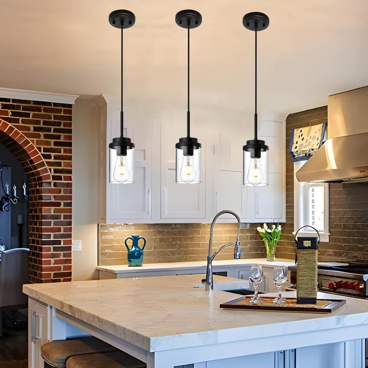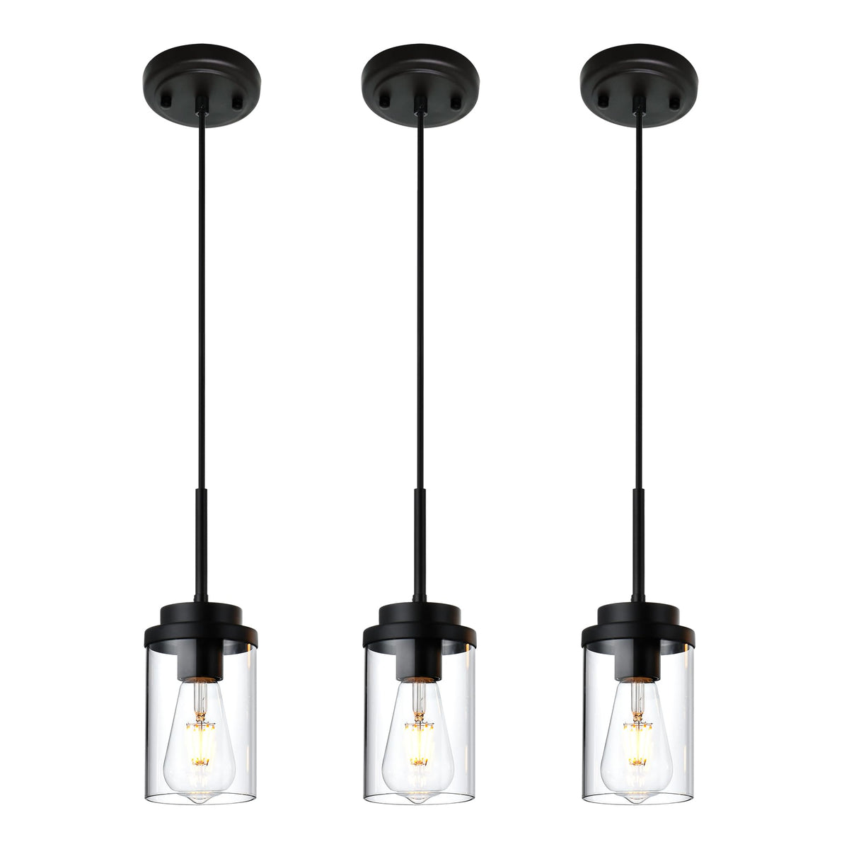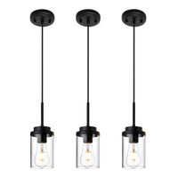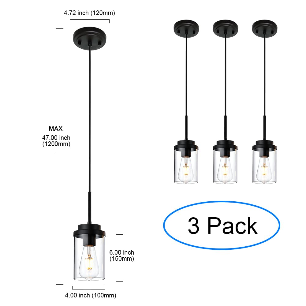Melucee 3 Pack Black Adjustable Pendant Lighting With Clear Glass Shade For Kitchen & Dining