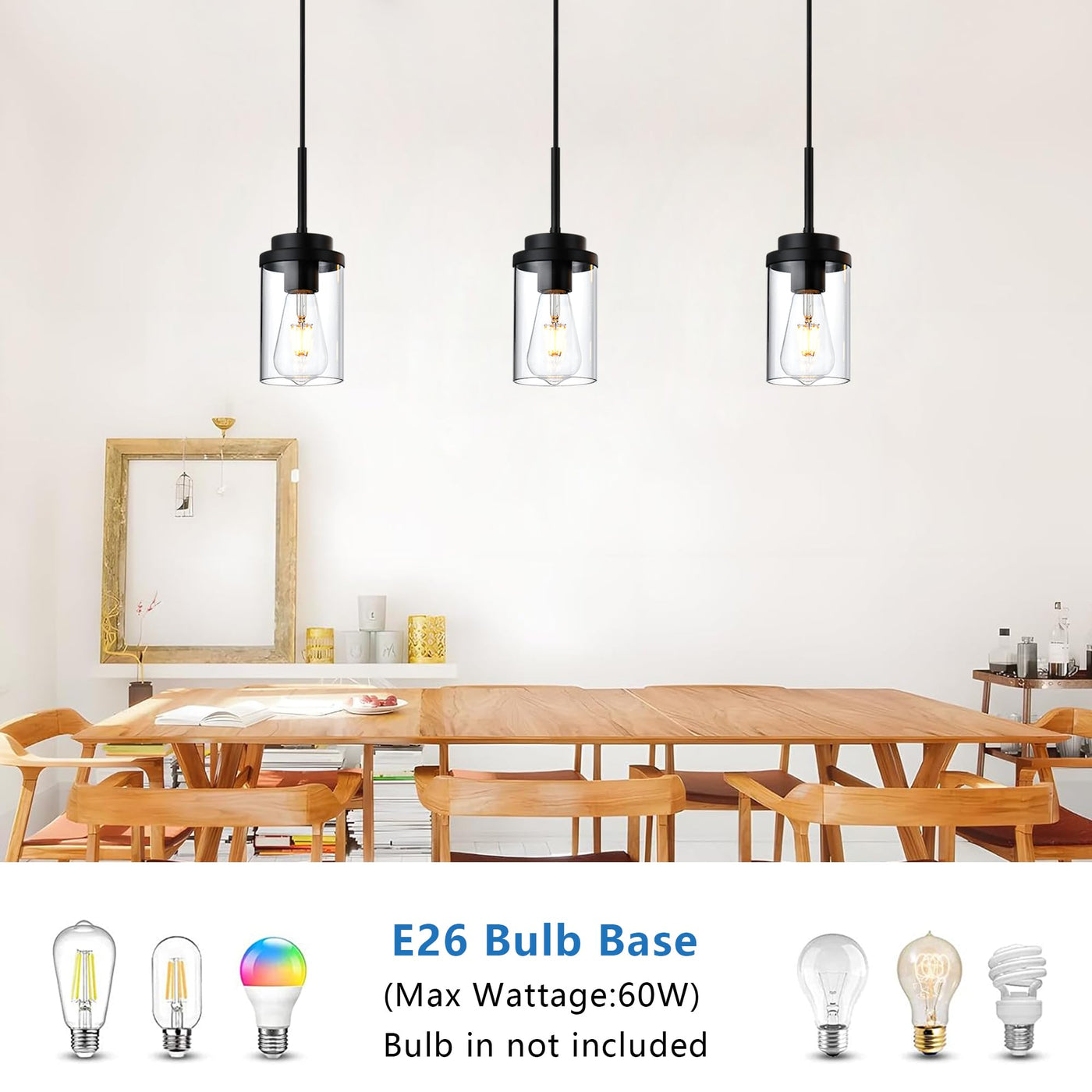- **Adjustable Height**: Customize the height of your pendant lights to suit your decor needs. The adjustable hanging wire allows you to create the ideal ambiance, while the open bottom of the cylinder glass shade facilitates easy bulb changes.