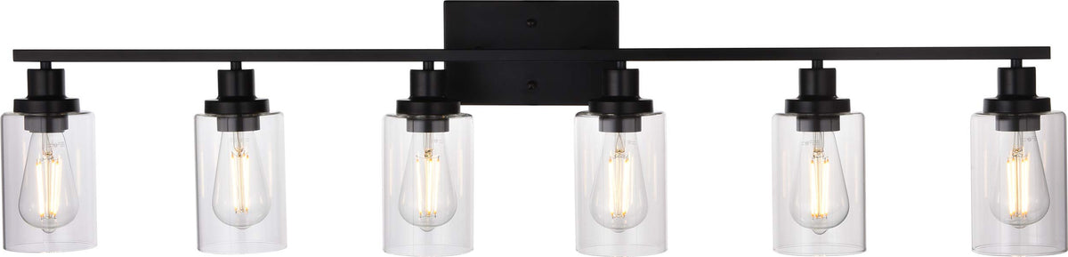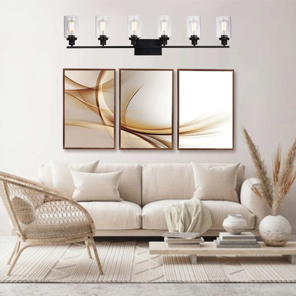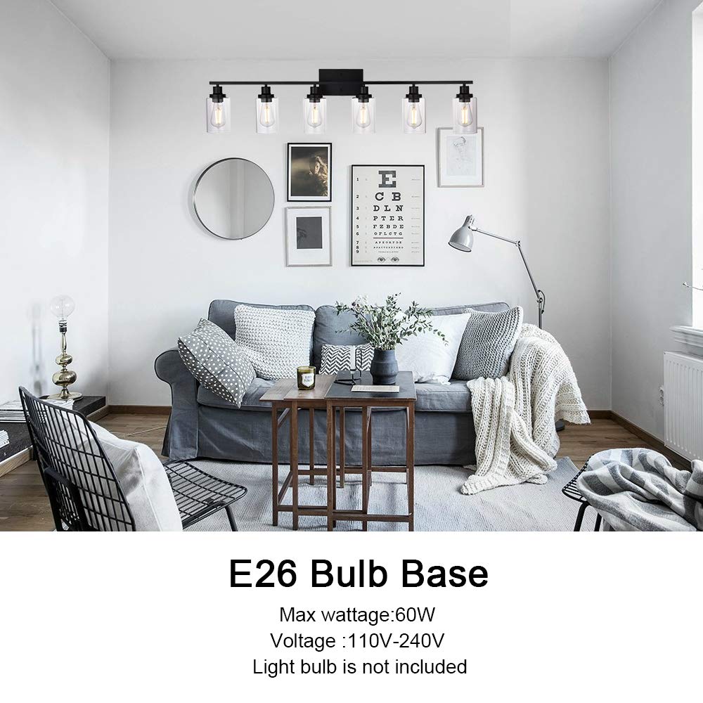 MELUCEE Black Vanity Light Fixture 6-Light Industrial Metal Wall Sconce Bathroom Lighting for Bedroom Hallway Kitchen, Clear Gla